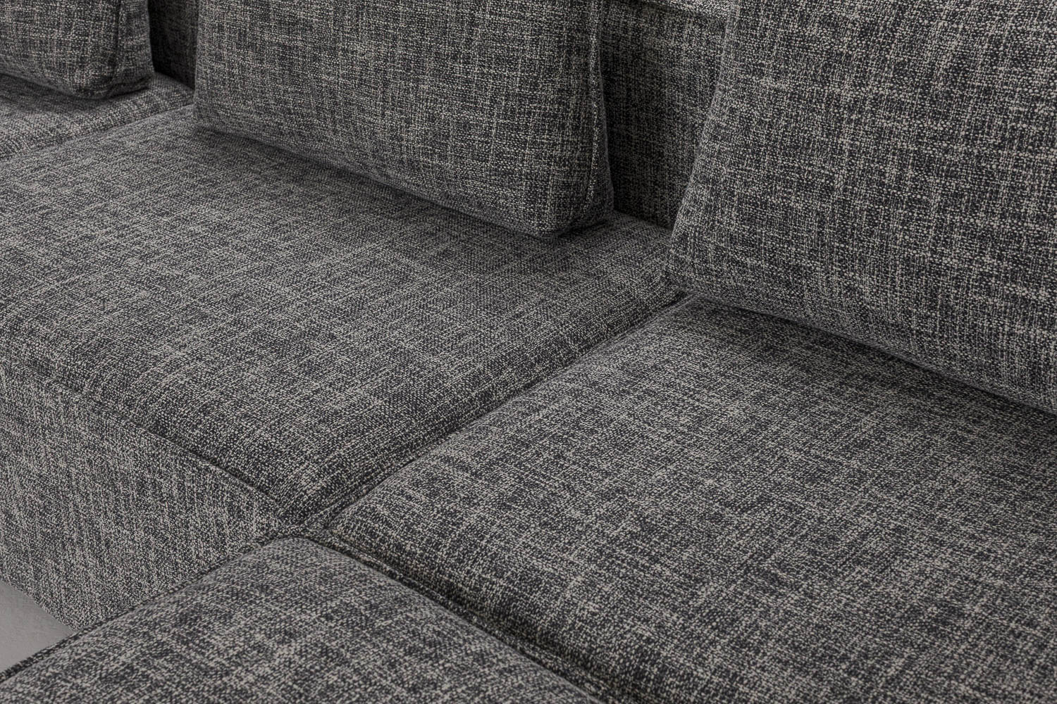 The Montclair Modular L-Shape Couch presents uncompromising comfort in a modern modular design that adjusts to your everyday needs. Its stylish charcoal hue and multiple configuration options mean that the Montclair is suitable for a variety of living spaces. The plush polyester fabric, soft cushions, and spacious design make this the ideal couch for creating a functional contemporary space.
