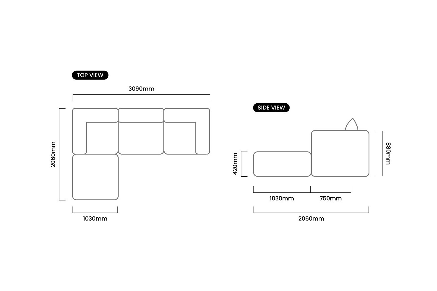 3090mm (L) x2060mm (W) x 880mm (H) | Seat Height 420mm | Seat Depth 750mm