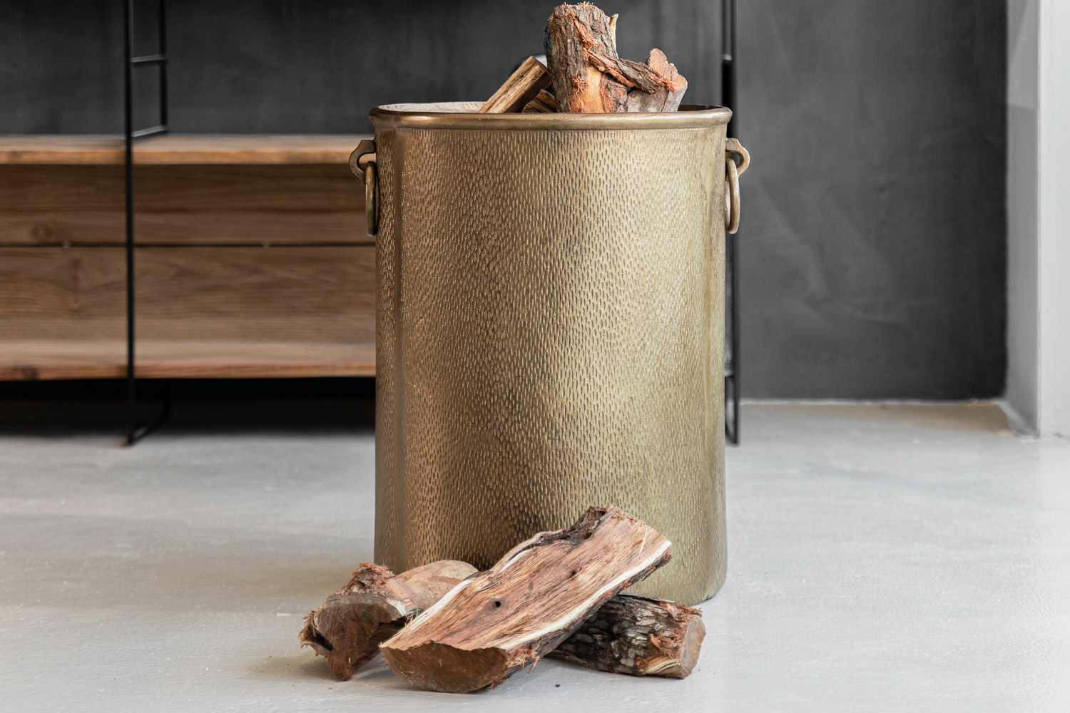 Keep your kindling close with the Fuego Firewood Barrel. This must-have décor piece introduces a practical yet stylish storage spot for your firewood. The artistic bronze barrel is made from hand-cast aluminium and features a creative textured steel finish to add the final touches to your fireplace.