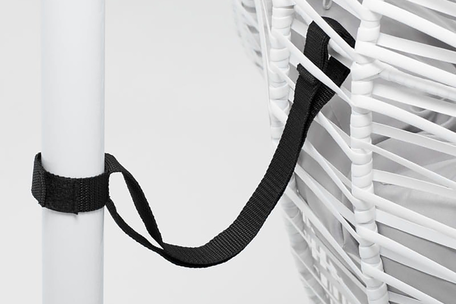 The body-conforming chair comes with 2 comfortable, low maintenance polyester cushions for body and head support, and features high-density PE (Polyethylene) rattan which is not only eco-friendly but fully weatherproof and insect resistant. The strong steel support ensures independent stability, allowing you to place your chair on any suitably level surface, even with limited space available.