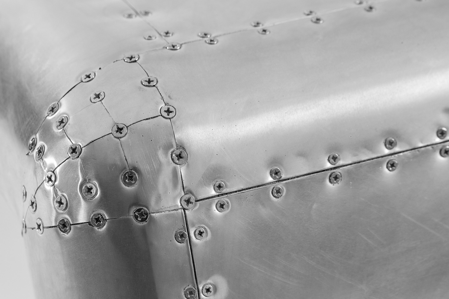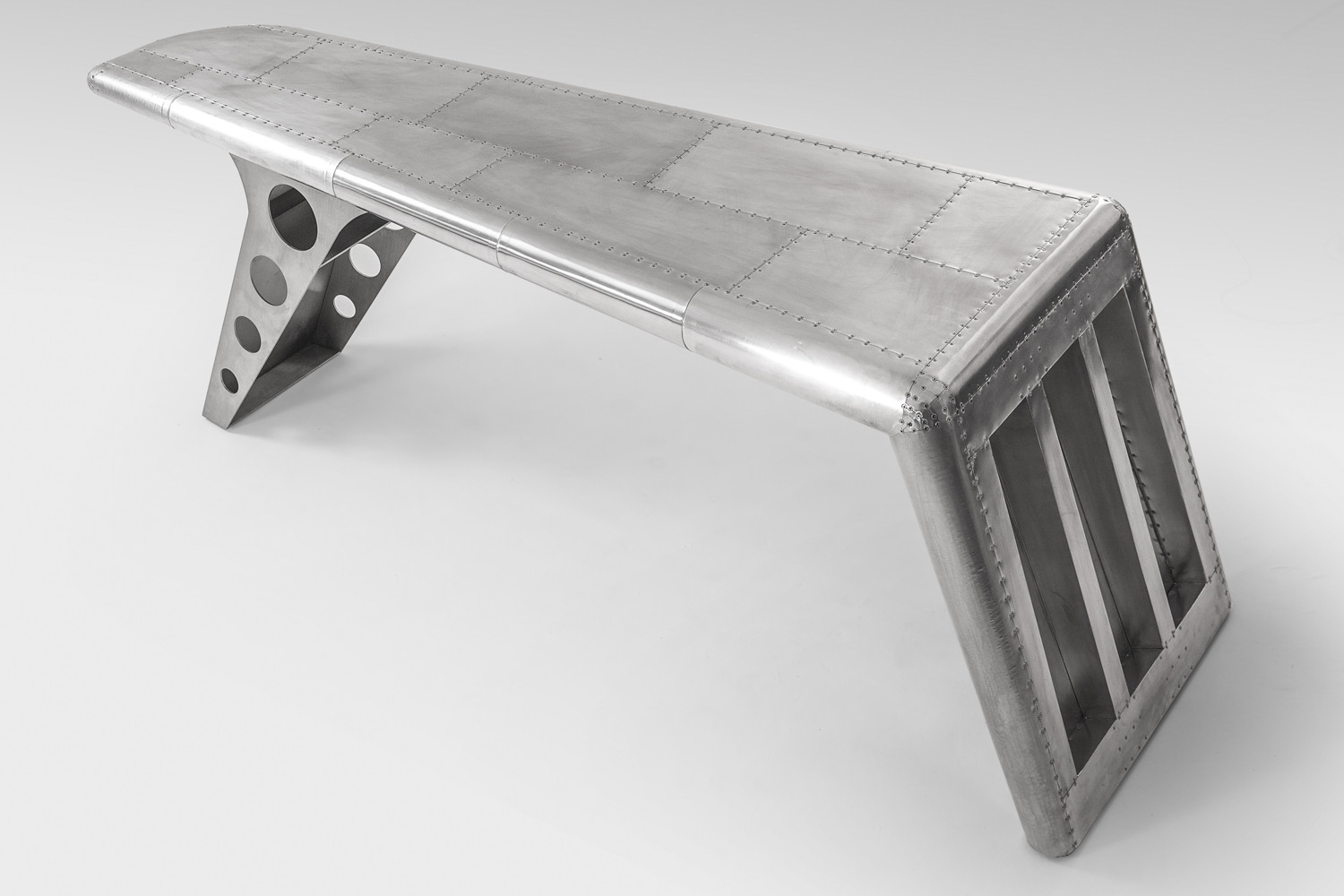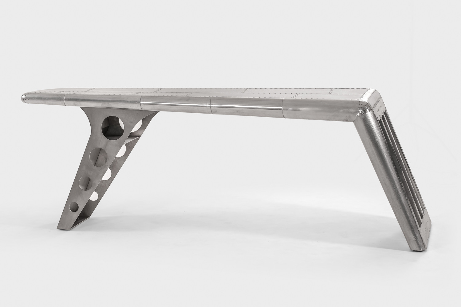 Bold and daring, going where none has gone before, the Hawker Aluminium Desk stands out in any setting. The desk features a uniquely aerodynamic shape, supported by a stainless-steel leg and wrapped in vintage riveted aluminium panelling to replicate the look of a famous WWII fighter plane. A perfect blend of classic and contemporary, the iconic Hawker Desk makes a statement that can’t be ignored.
