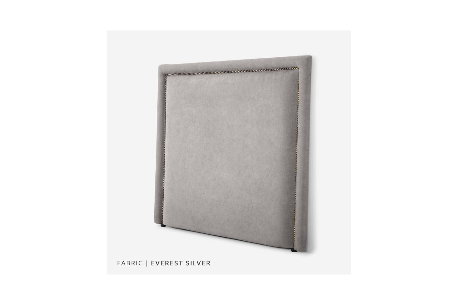 Classic headboard with nail-head trim and matching bed base. Upholstered in a variety of high-quality fabrics and faux leathers.