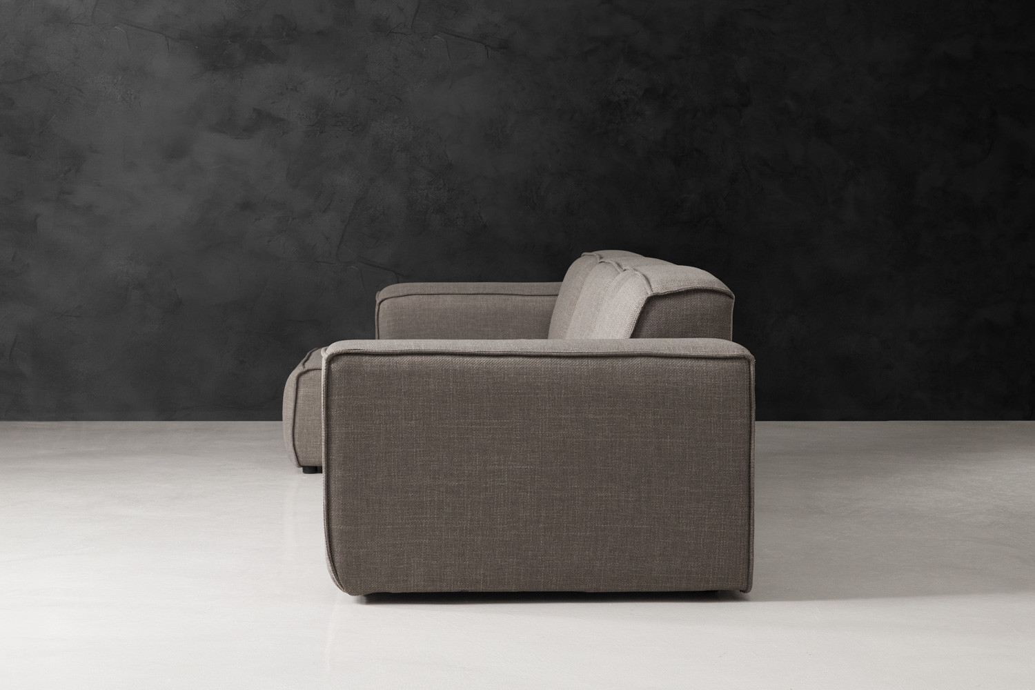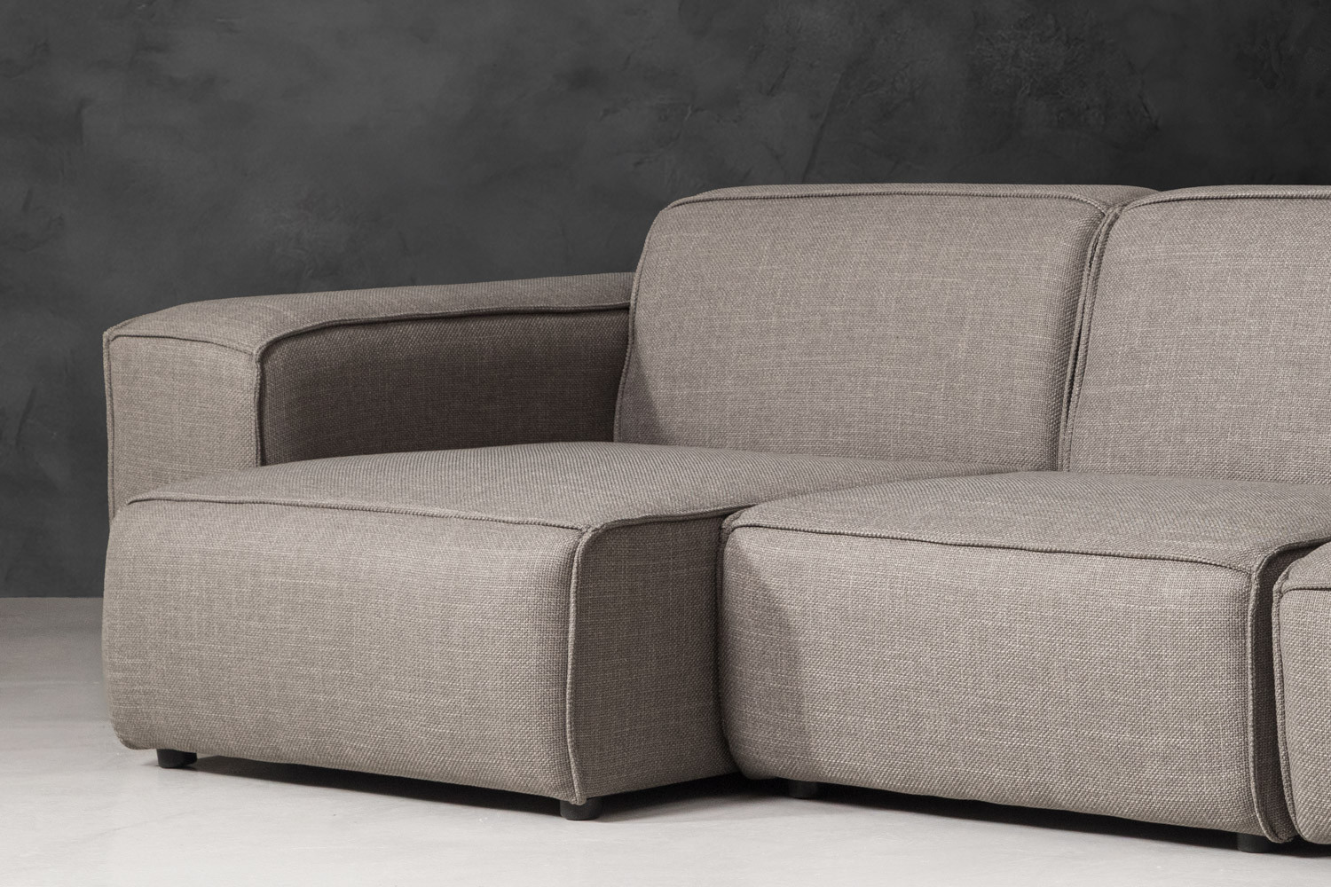 The Jagger Grand Ledge L-Shape Couch takes the bold, minimalist language of the Jagger range and adds an irresistible new way to lounge. The design features an extended “ledge” seat on one of its three modular pieces, creating the ideal spot to stretch out. Upholstered in premium fabric in a versatile grey, it’s a modern anchor for relaxed, design-led living. With its low-profile, squared silhouette and tailored reverse-stitched seams, it strikes that perfect balance between structured design and sink-in comfort.