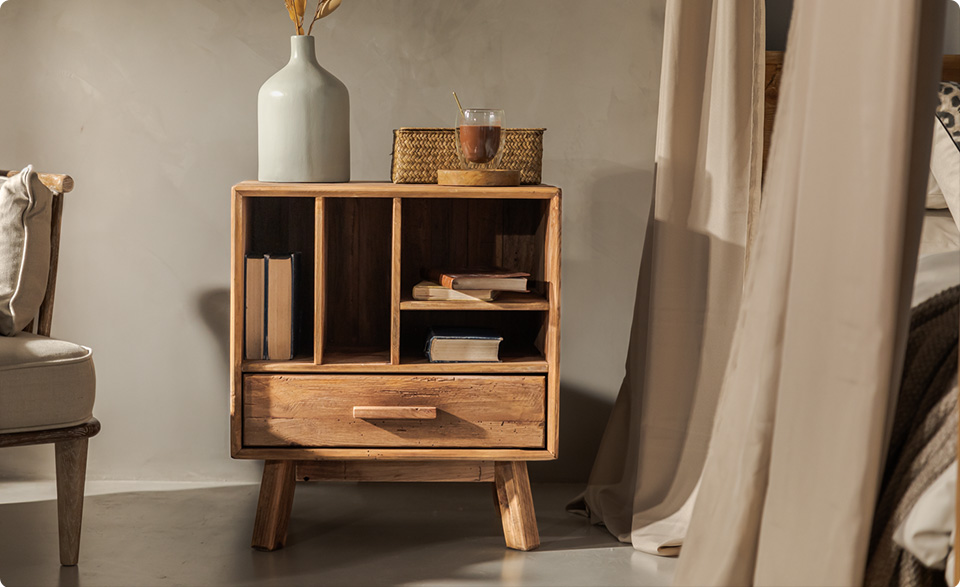 Beautifully crafted from reclaimed Pine, the single drawer Voyager Pedestal features warm natural tones producing both sustainability & durability.