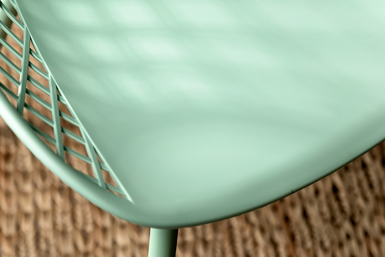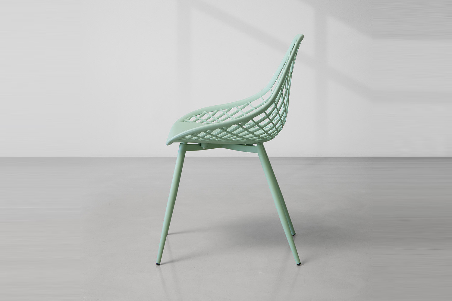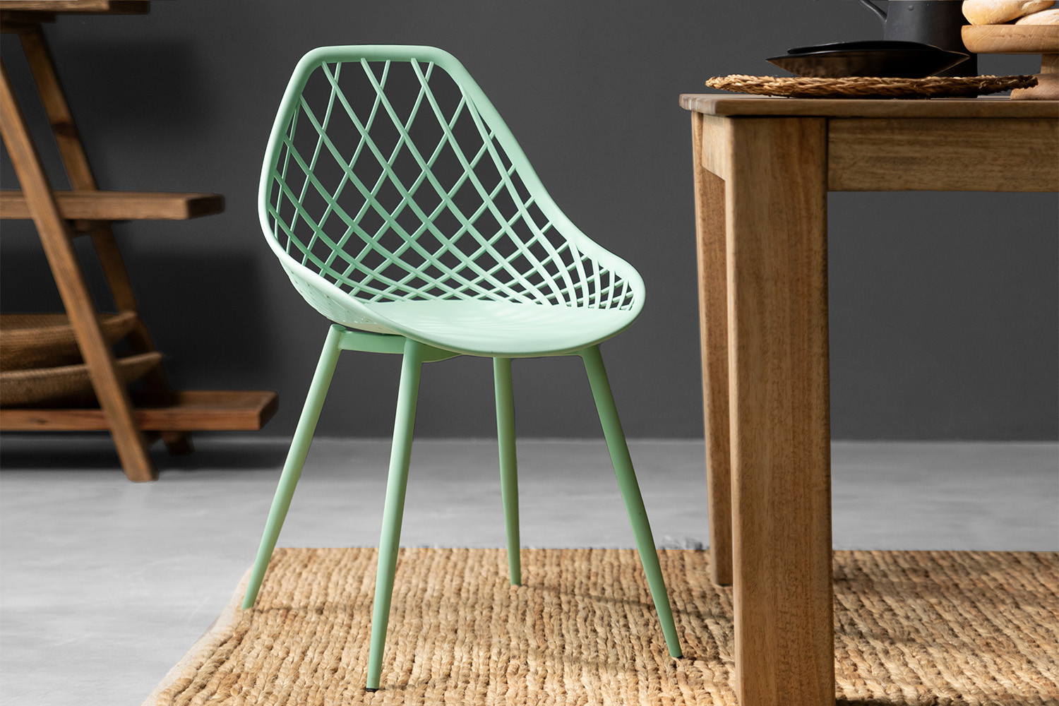 Fab and fresh, the Ivie Dining Chair brings a light, spontaneous feel to any space. Featuring a fantastic lattice design with a curvaceous polypropylene seat and metal legs. This trendy chair ensures comfort and convenience, and is sure to make a statement whether as an indoor or outdoor dining chair, or a fun feature piece.