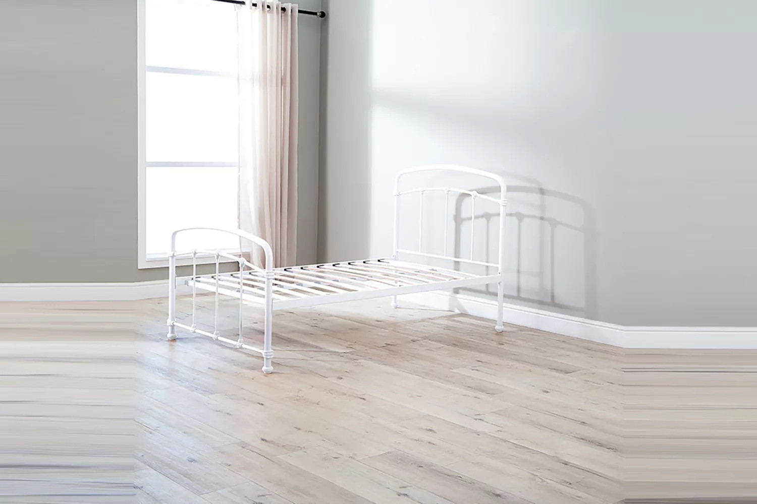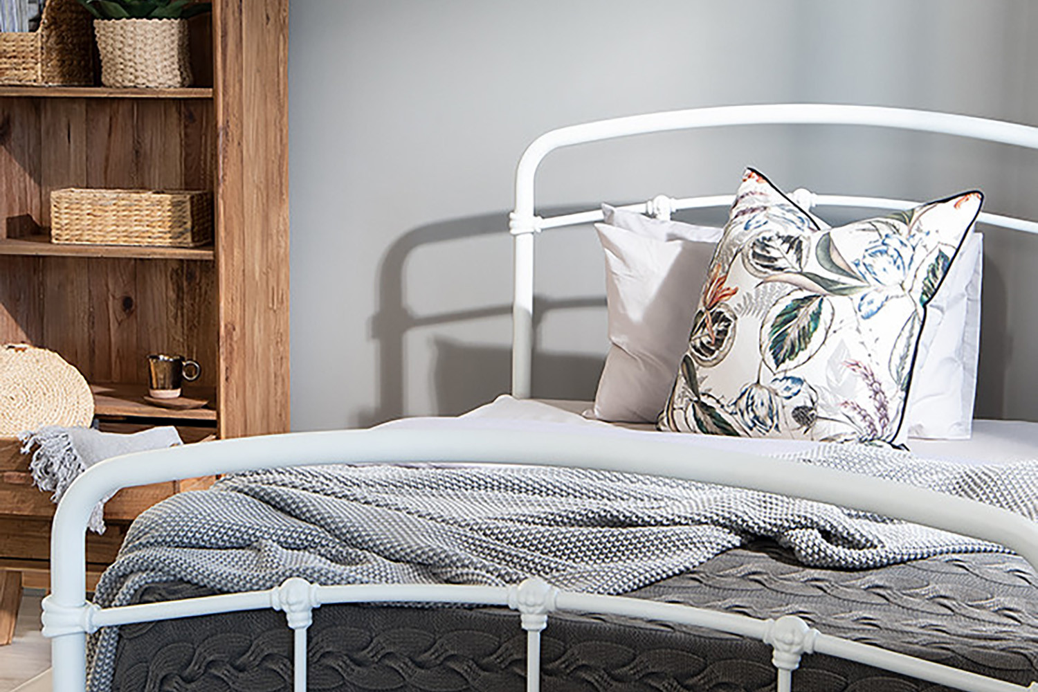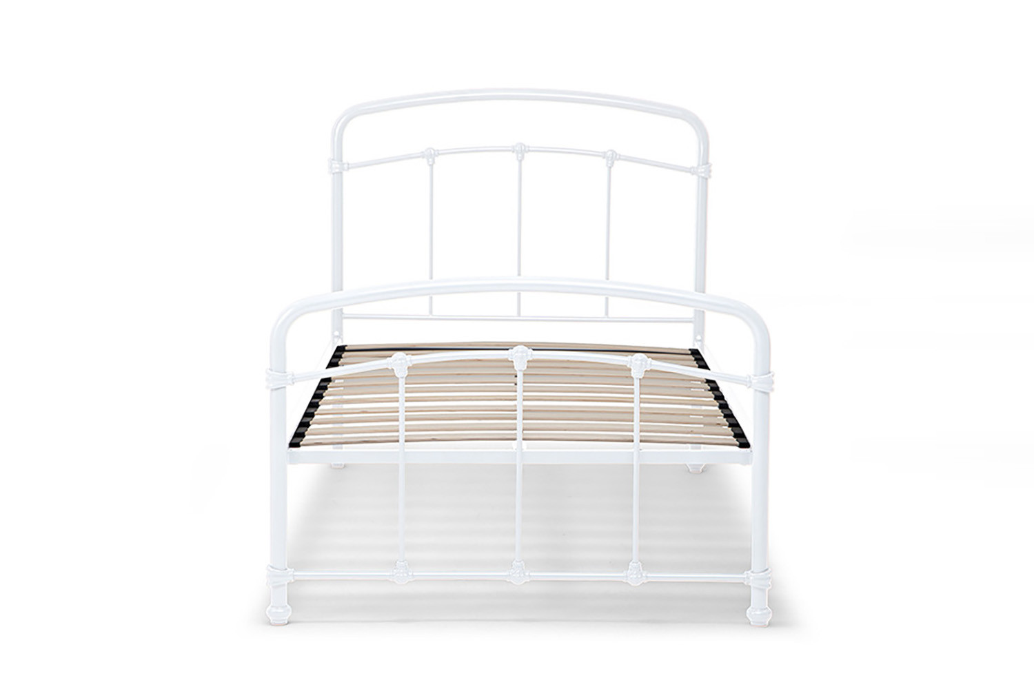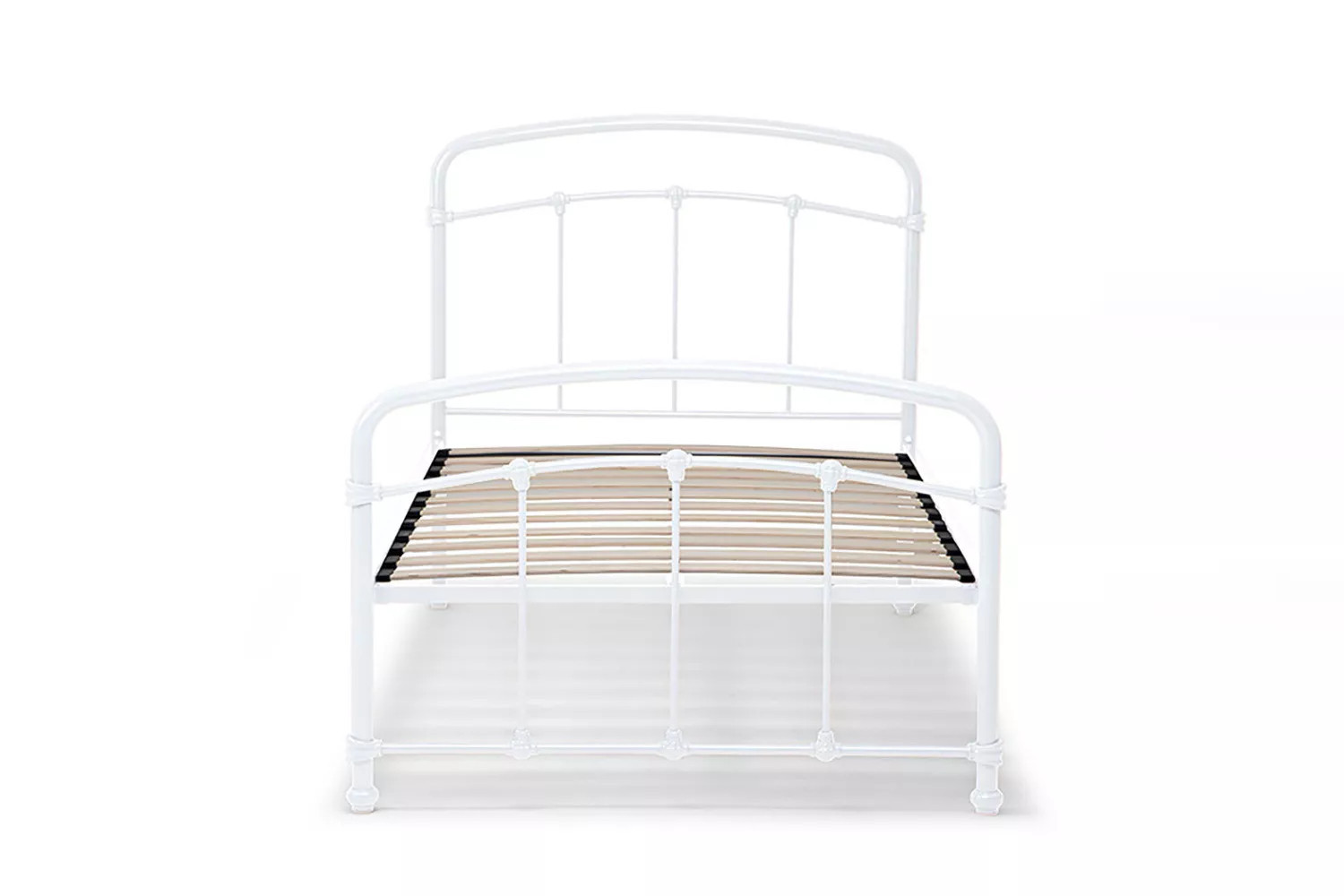The Larissa Bed, constructed from durable powder-coated steel and featuring sprung slats that provide ideal support for all foam mattress types, offers quality and versatility with the option to add a lower trundle bed to convert to a larger bed or two standalone locations.