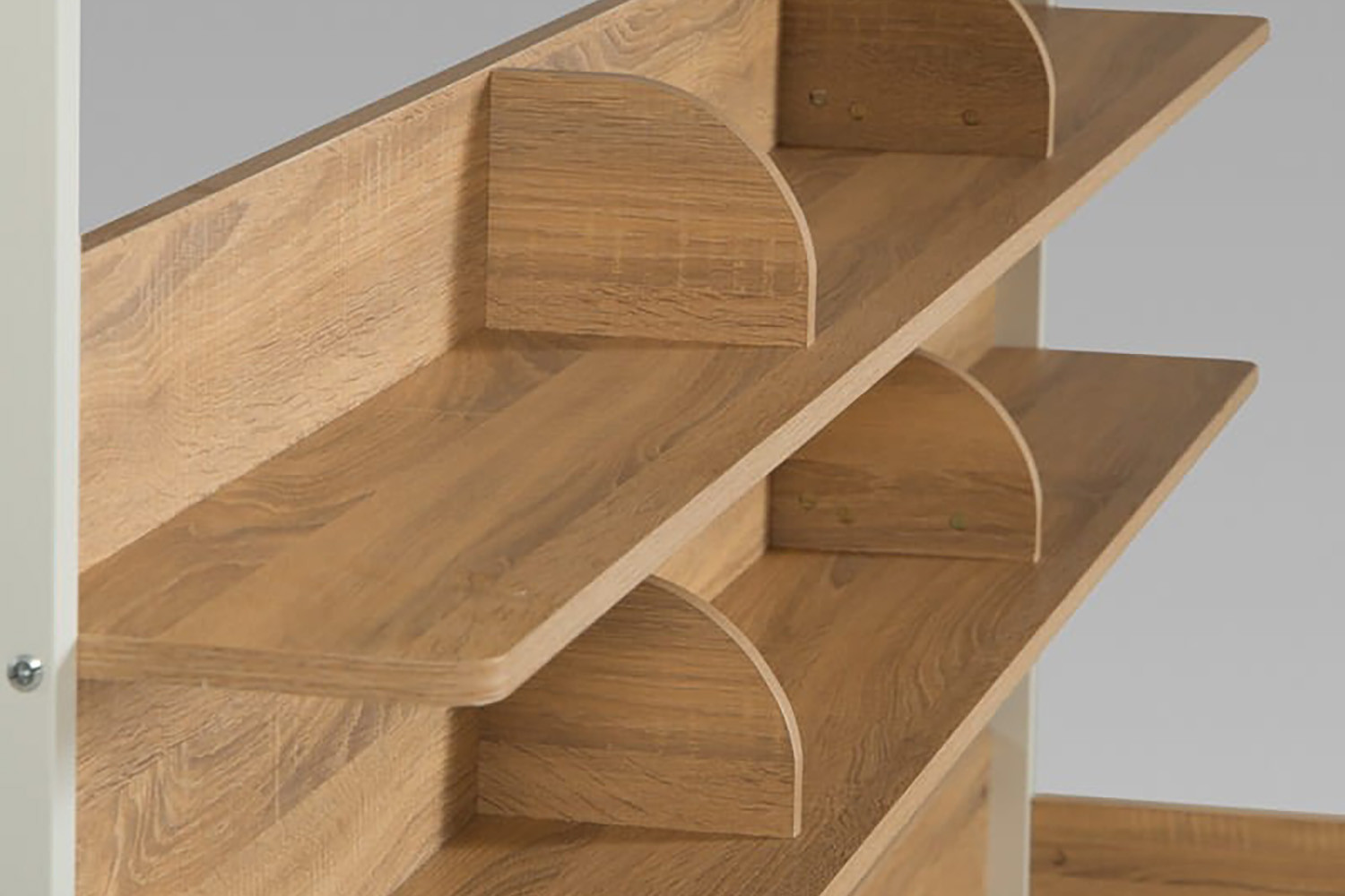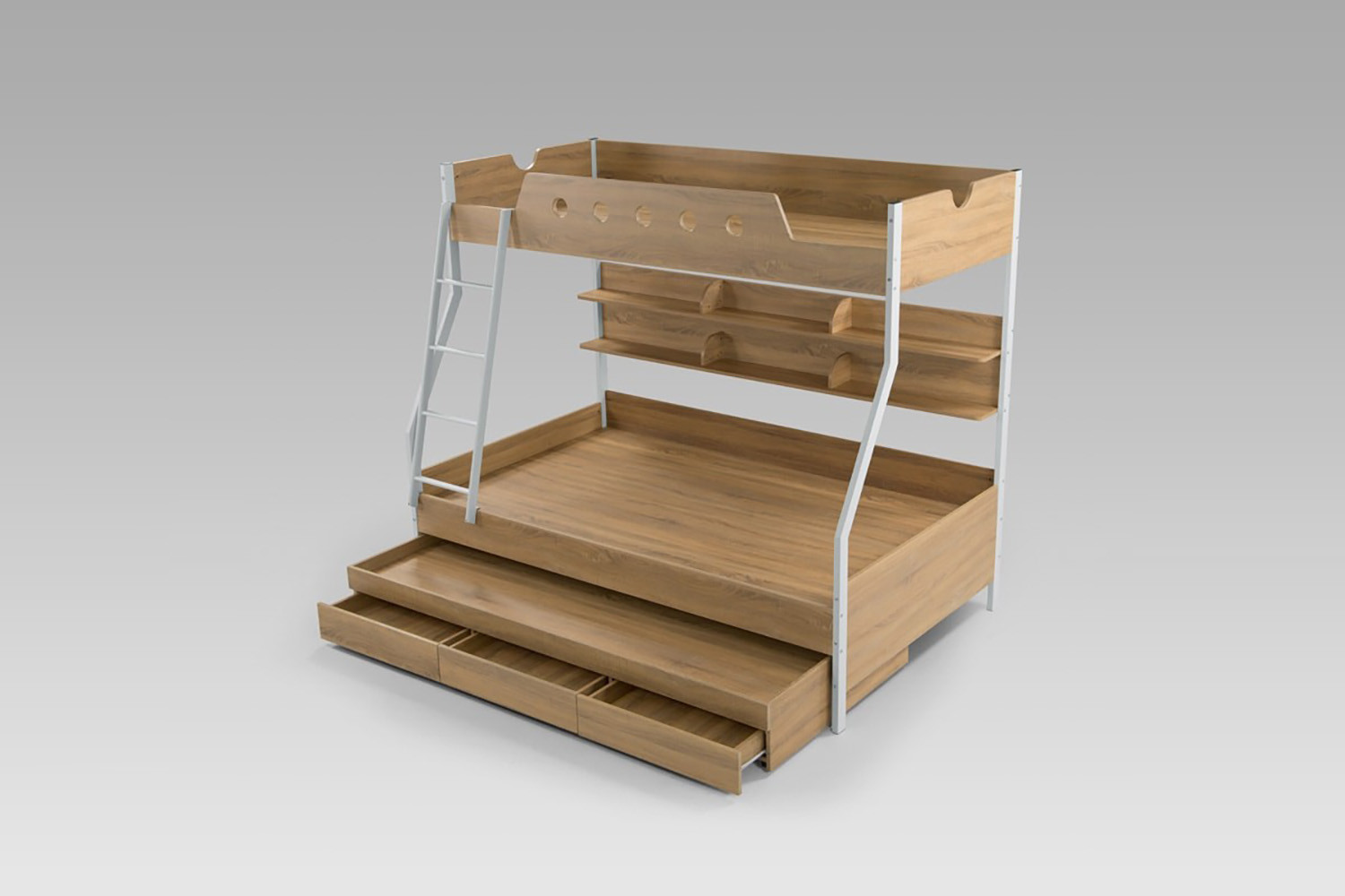 The Pluto Double Bunk Bed combines functionality with dreamy comfort, making it perfect for your child's adventures into slumberland. Crafted with a sturdy metal frame and convenient shelving for treasures, this premium bed is ideal for restful sleep and imaginative play. Pluto is a true centerpiece for any child's room.