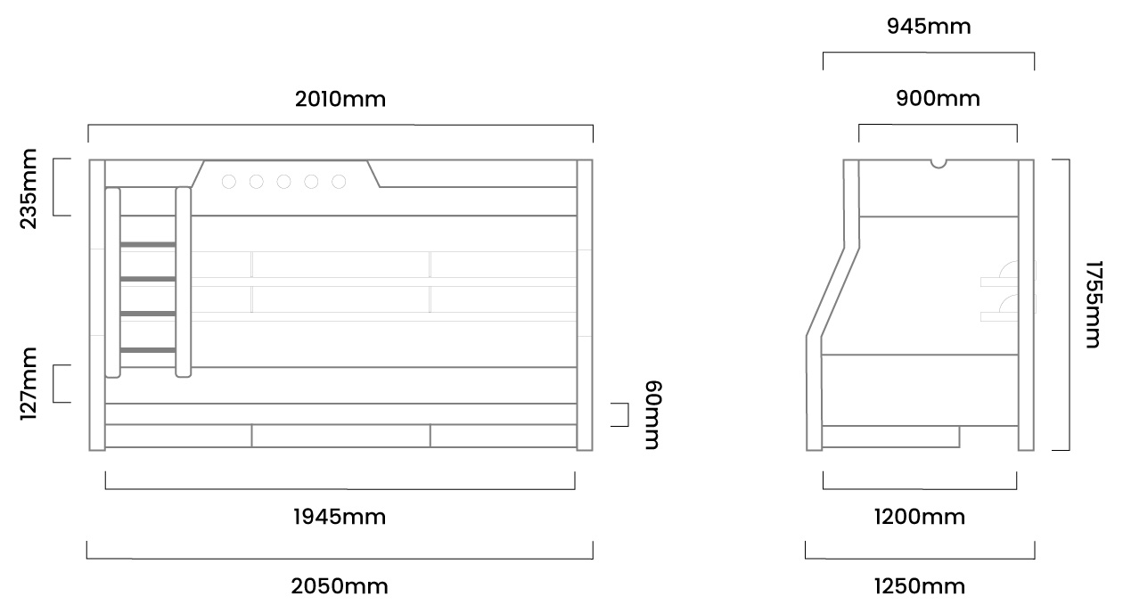Top Bed: 2010mm (L) x 900mm (W) x 235mm(H)