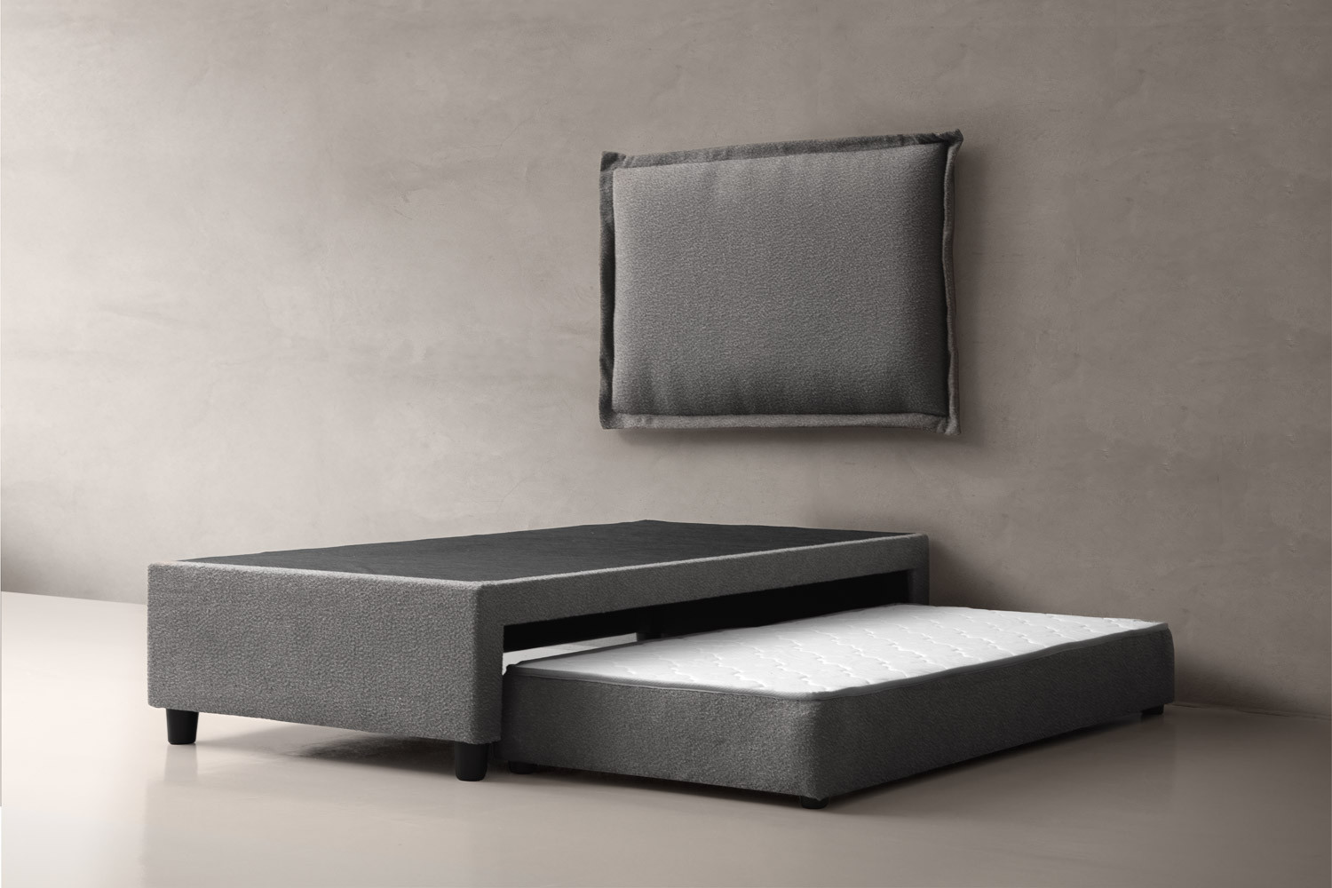 The Lyla Jupiter Bed pairs a plush Lyla headboard with the Jupiter dual-function base to create a cosy sleep setup that saves space. Enjoy cushioned, pillowy comfort at the head, paired with the convenience of a pull-out bed that includes a built-in foam mattress. It’s an ideal combination for children’s rooms or guest rooms, ensuring that you’re ready to host at a moment’s notice.