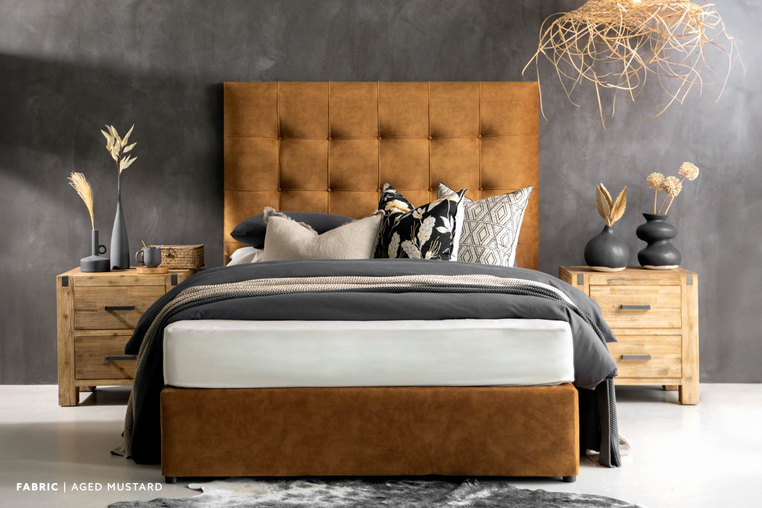 Ariella Bed Combo - King XL - Aged Mustard