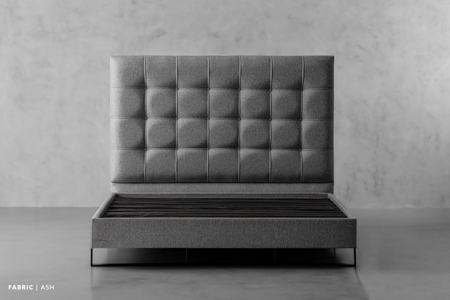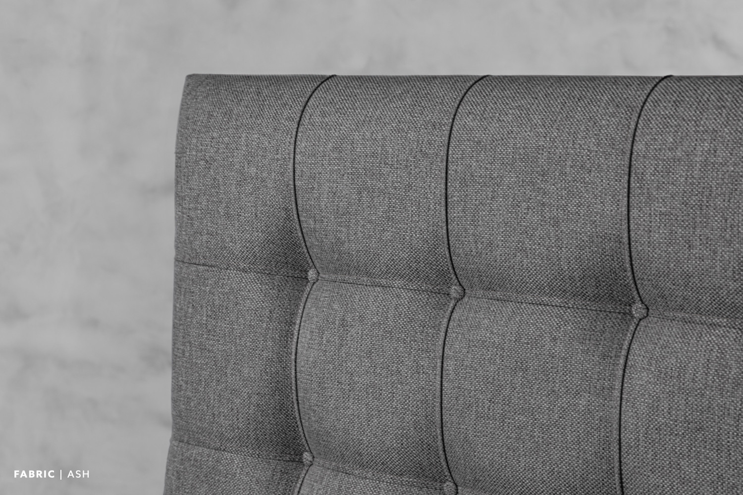 The Ariella Cazana Bed presents an elegant addition to your contemporary bedroom. This combination features a free-standing headboard with stylish large grid tufting and a matching upholstered bed base with stylish mild steel legs. This headboard and base combo features various high-quality upholstery options, ensuring comfort and style.