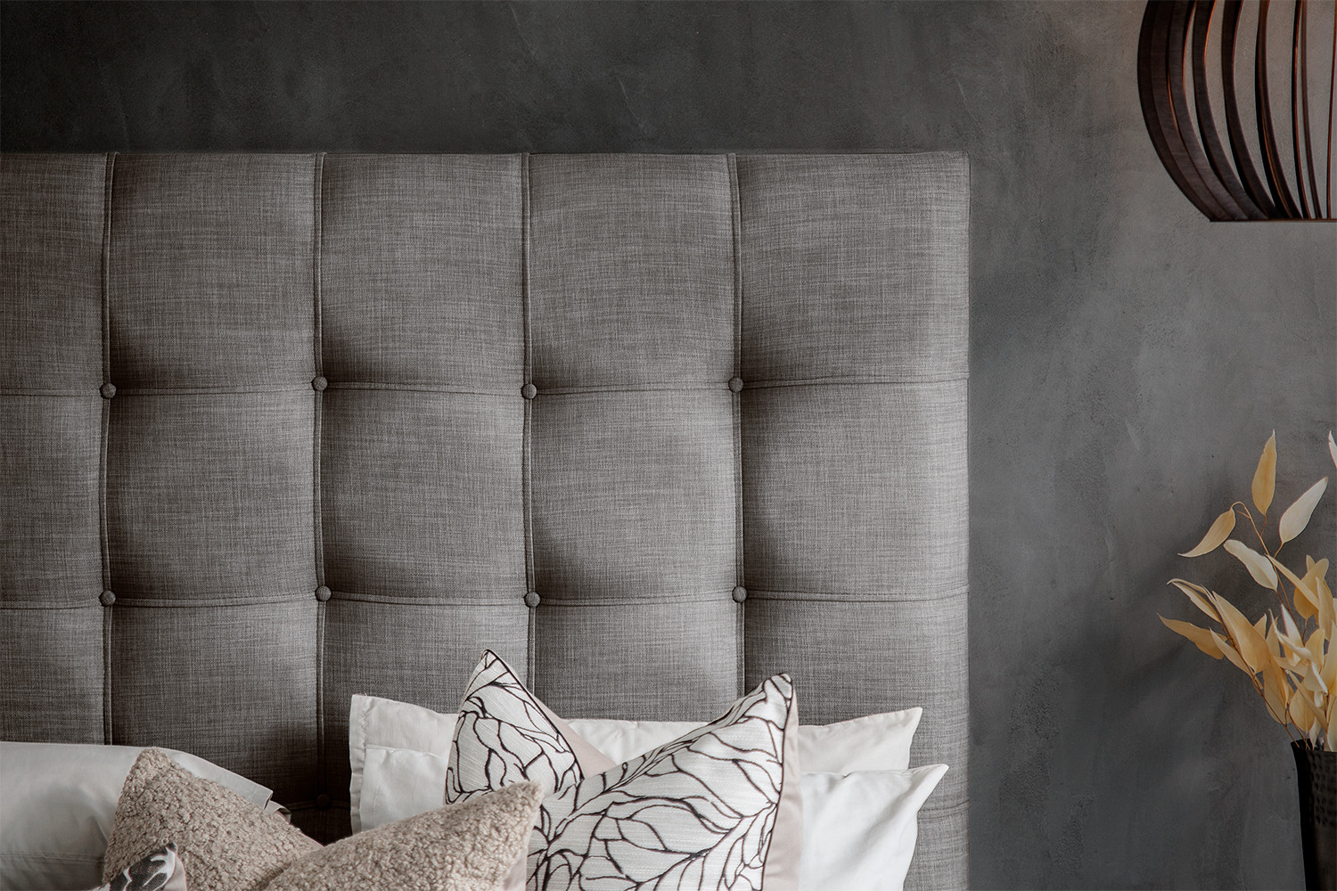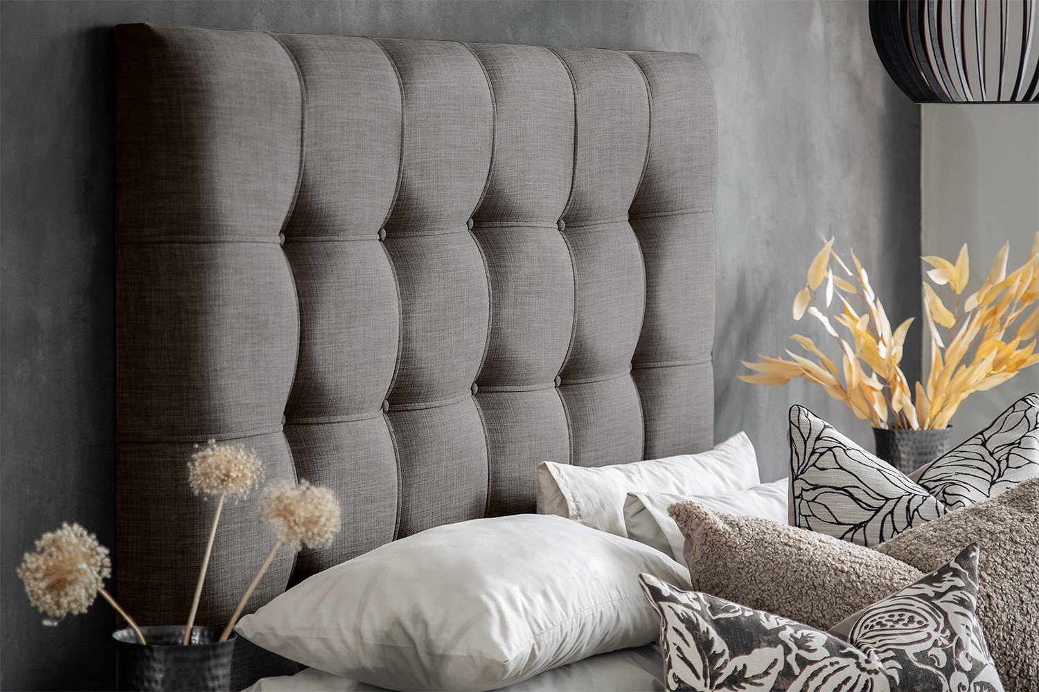 Generously proportioned headboard with stylish large grid tufting and luxurious padding