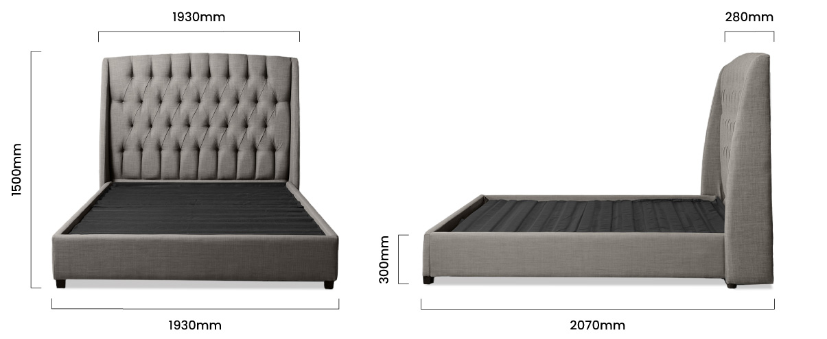 Headboard: 1930mm (L) x 280mm (W) x 1500mm (H)