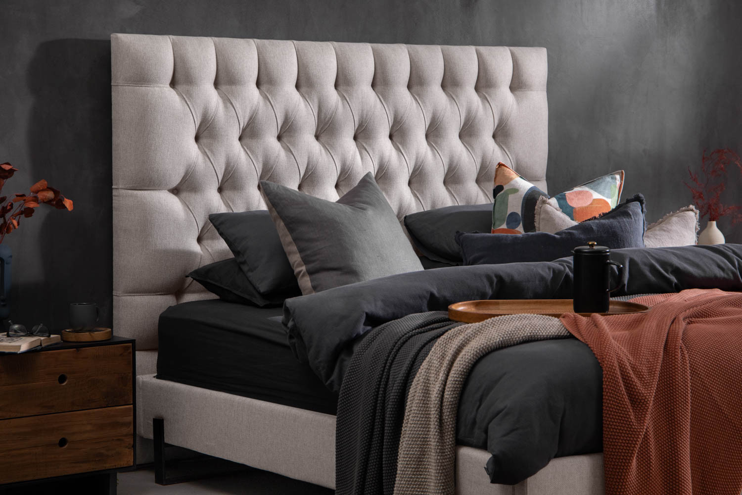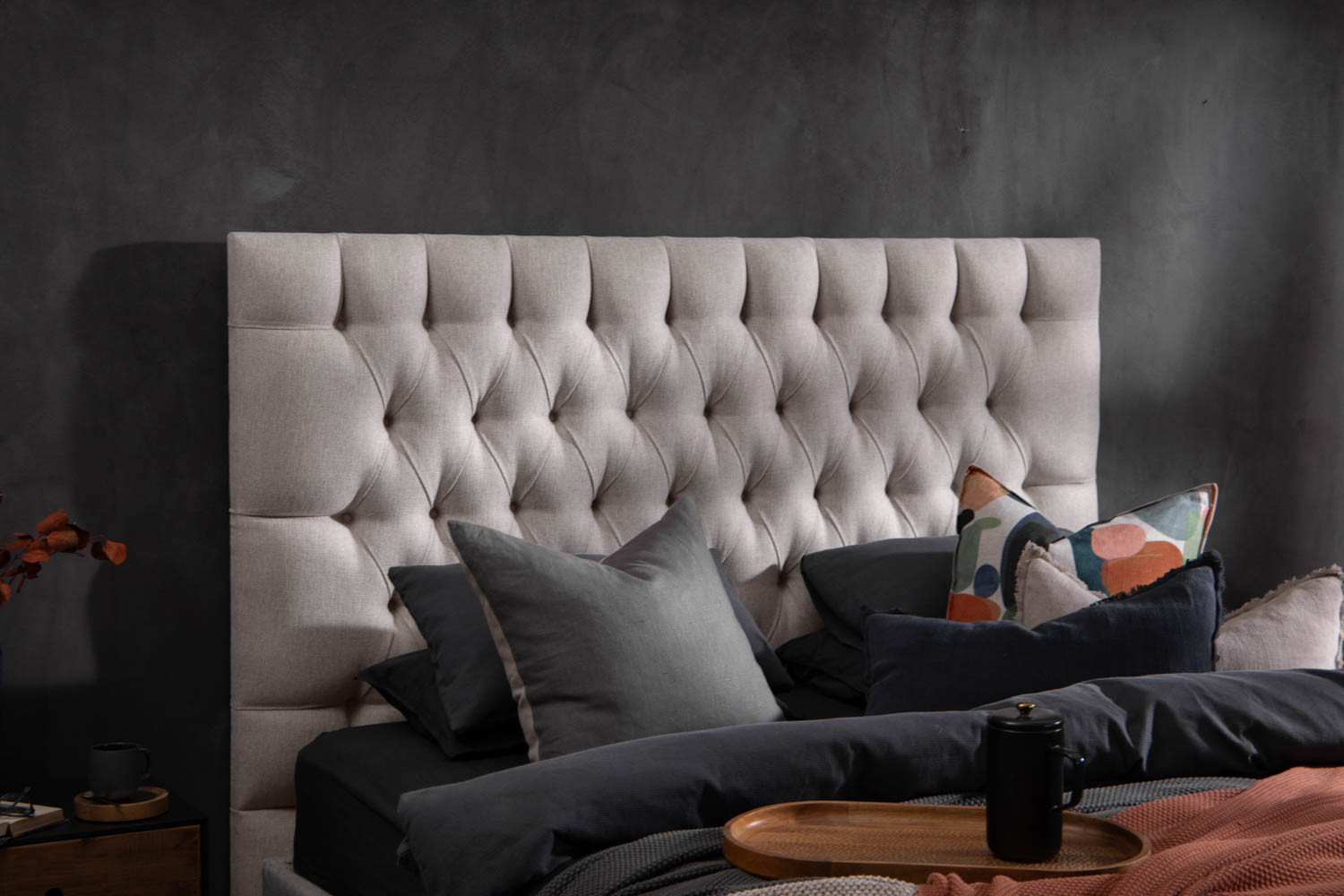 • Generously proportioned headboard with classical diamond tufting and luxurious padding