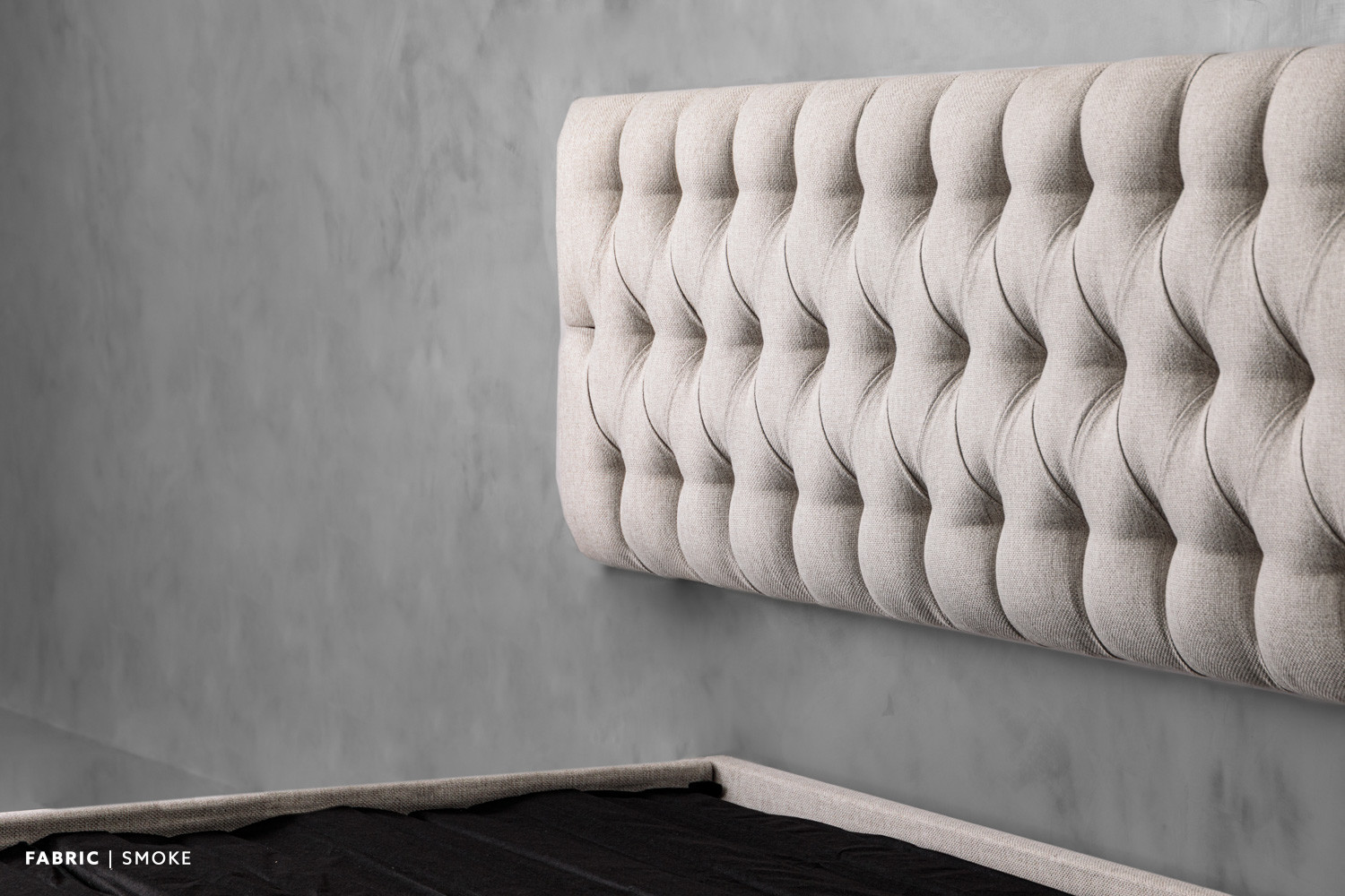 Add a distinguished and luxurious feel to your bedroom with the Catherine Grand Cazana Bed. This wall-mounted headboard is upholstered in the most elegant selection of fabrics. Paired with the Cazana bed base, a premium upholstered base with classy steel legs. The headboard's grand design means that it extends wider than the base, providing space to incorporate stylish pedestals to bedroom look.
