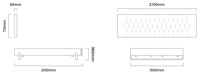 2100mm (L) x 1930mm (W) x 360mm (H)