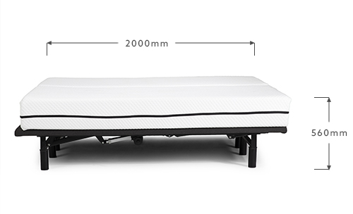 2000mm (L) x 1800mm (W) x 560mm (H) (When Flat)