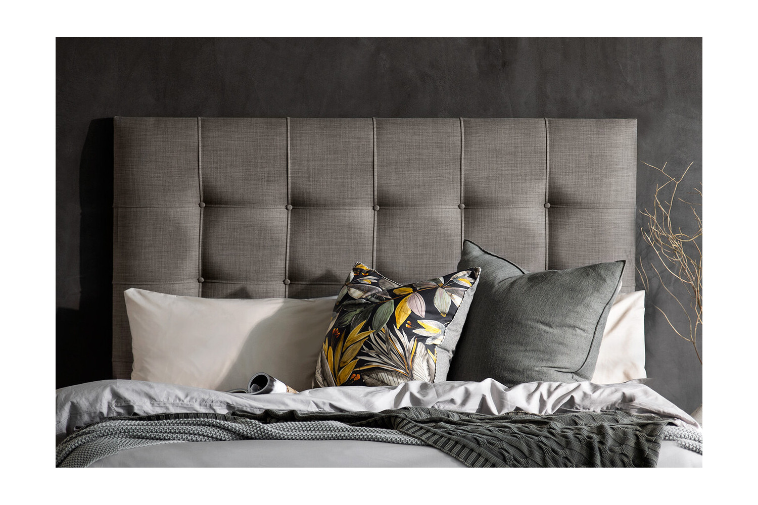 The Ariella headboard features a large grid tufted design with button detailing for a stylish contemporary look. Generously padded and well proportioned, this headboard offers cosy and comfortable support when you need a couple of peaceful hours to work or read in bed.