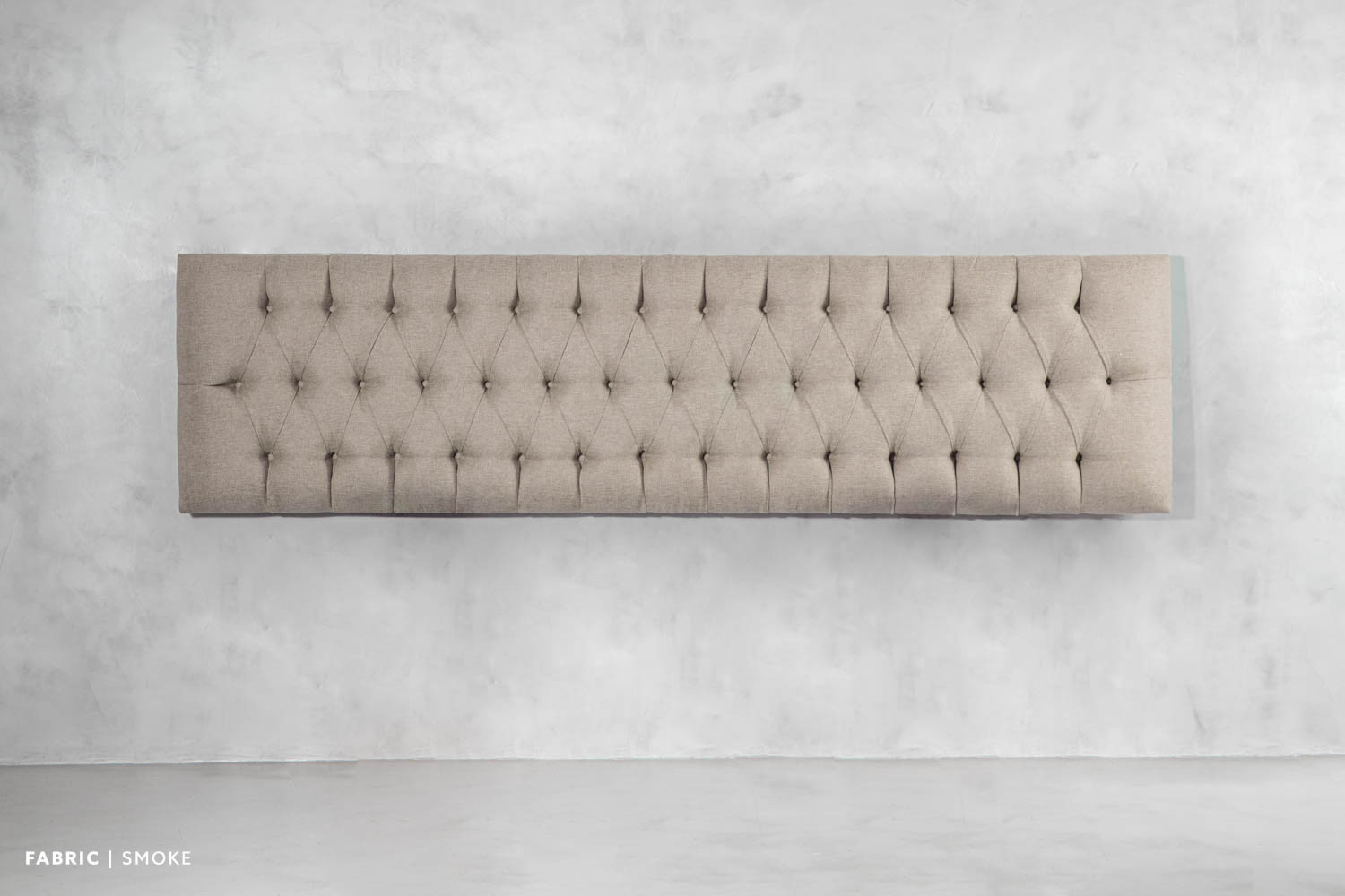 Add a distinguished and luxurious feel to your bedroom with the Juliette Grand King Headboard. This wall-mounted headboard is upholstered in the most elegant selection of fabrics and tufted for comfort. Its grand king design means the headboard extends wider than your bed, creating a visually complete look by framing your bedside tables or pedestals.