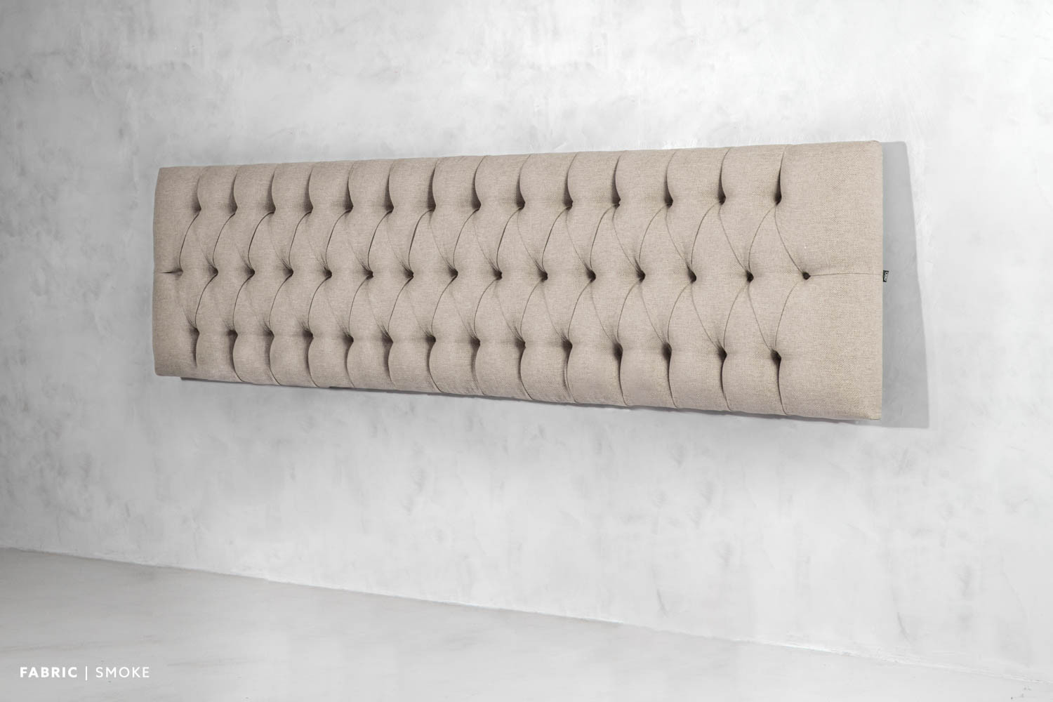 This wall-mounted headboard attaches directly to your wall and is fitted snuggly above your bed, to make a statement in your bedroom. Wall mounted fixings and brackets on the back of the headboard are used to secure this type of headboard to the wall. Making use of French cleat mounting hardware, the headboard is easily attached to any type of wall.
