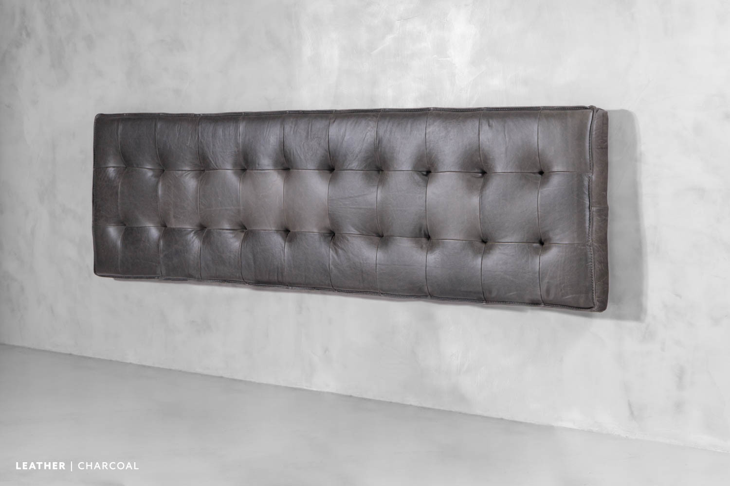 The Warwick Grand Leather Headboard welcomes a contemporary statement piece to your bedroom. This wall-mounted full grain leather headboard features distinctive reversed seam stitching and blind tufting. This headboard's natural raw look is produced by its premium leather exterior. Its grand design means the headboard extends wider than your bed, creating a visually complete look by framing your bedside tables or pedestals.