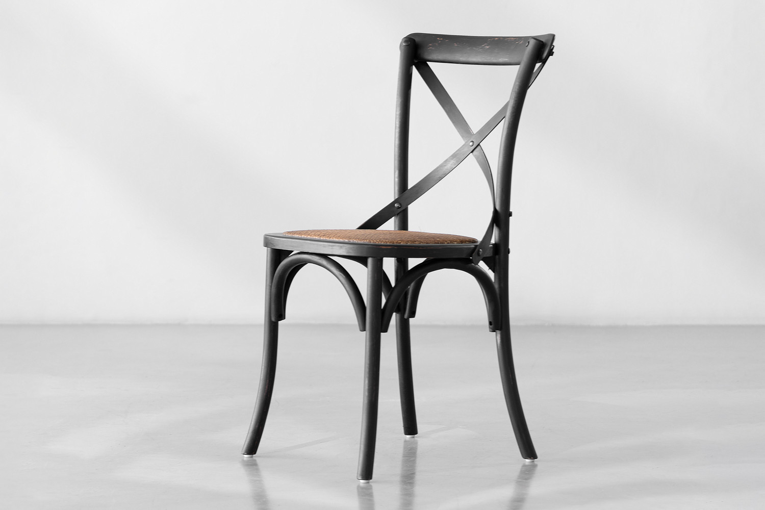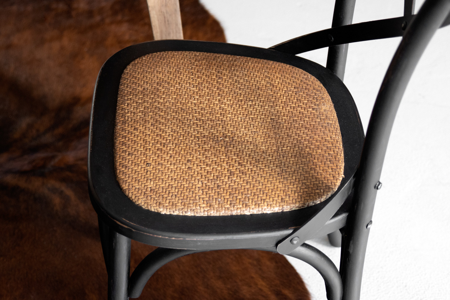 Frame:Rustic Black | Seat: Natural Rattan