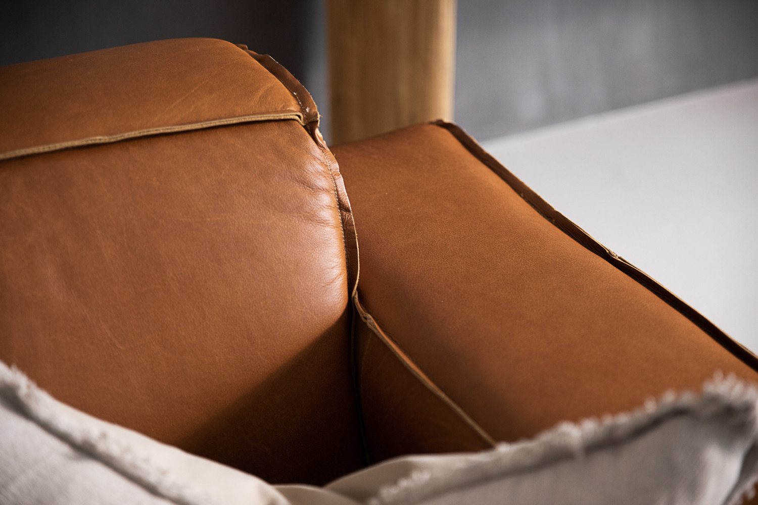 The Jagger Armchair boasts a bold contemporary design with a square-like silhouette, keeping the design simple but striking. The Jagger is upholstered with luxurious full-grain leather, finished with reversed stitched seams to keep a natural raw look with a warm feel. This armchair is the ideal furniture piece for any contemporary setting.