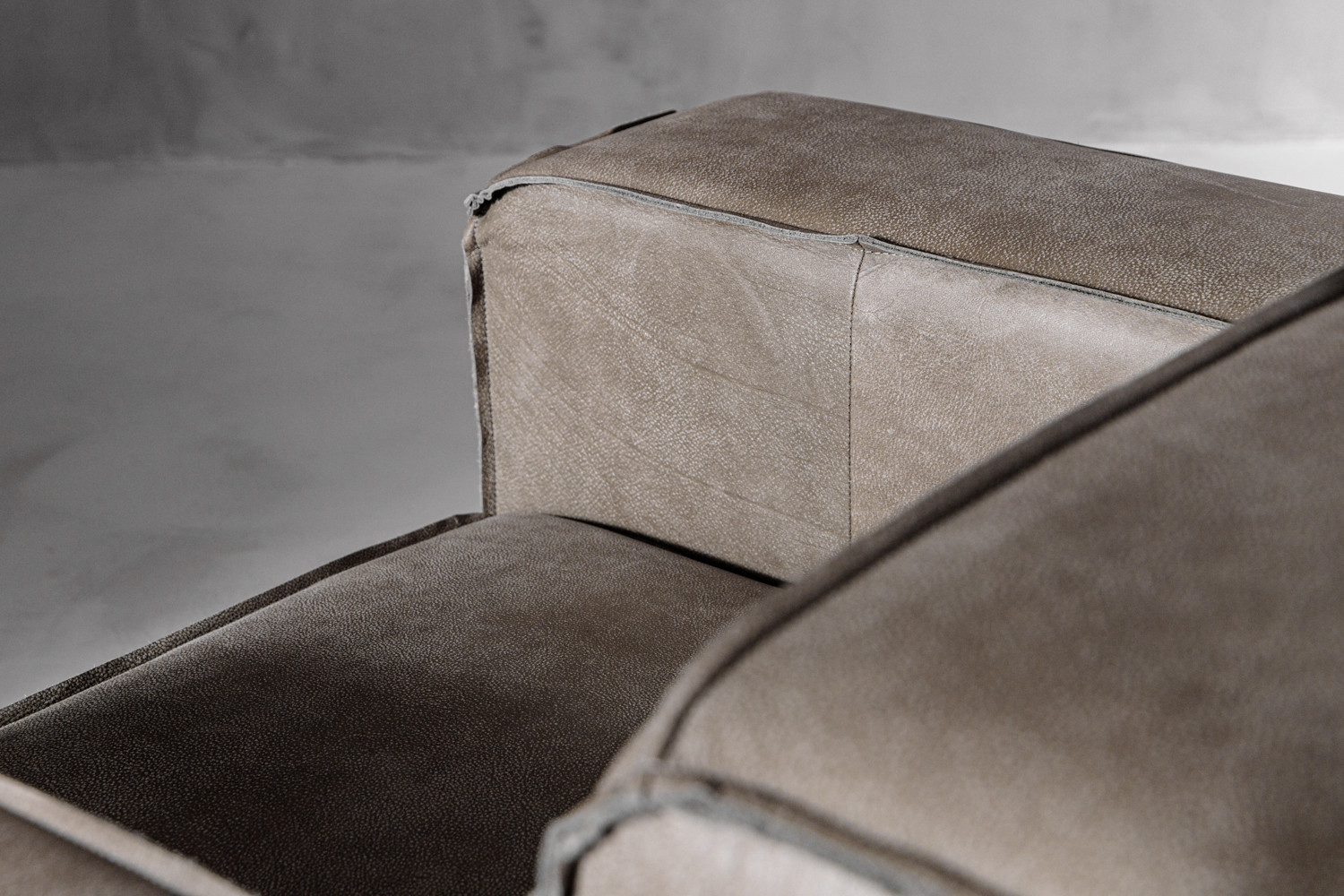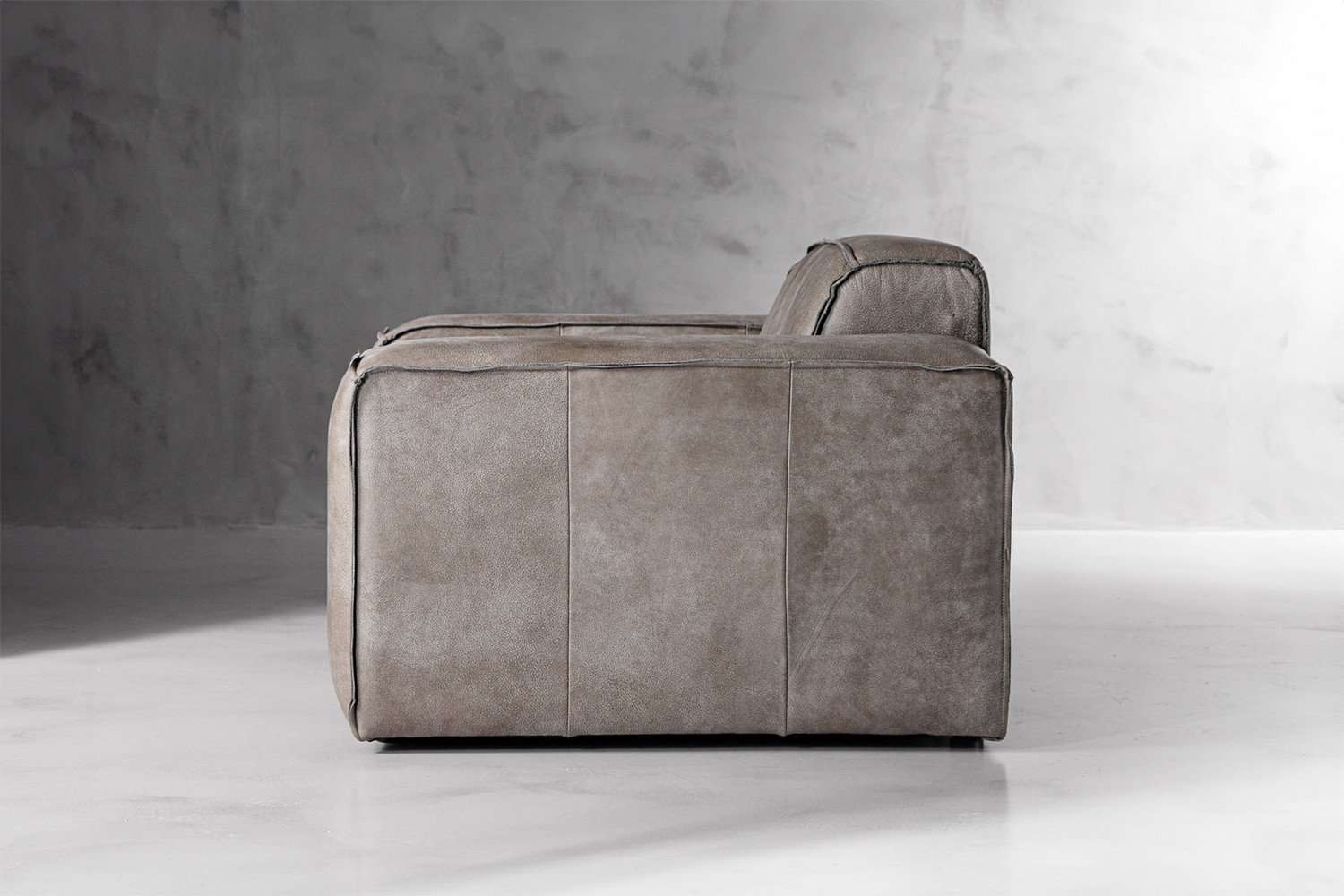 The Jagger Armchair boasts a bold contemporary design with a squared silhouette, making the design simple but striking. The Jagger is upholstered with luxurious Nubuck genuine leather, finished with reversed stitched seams to keep a natural raw look with a warm feel. This armchair is the ideal furniture piece for any contemporary setting.