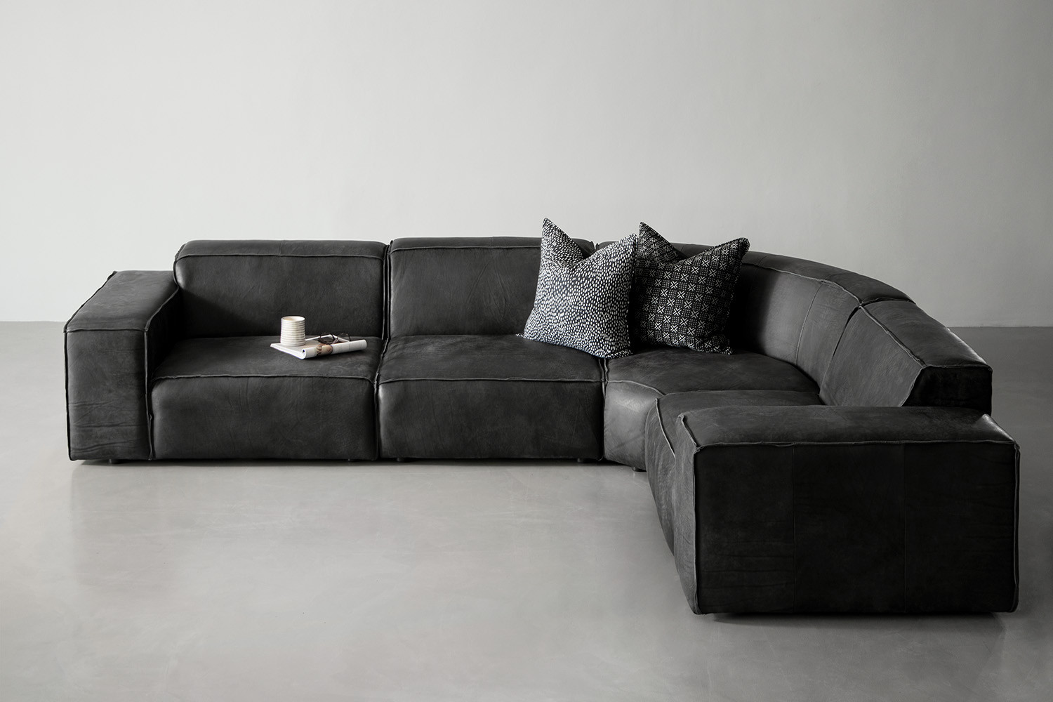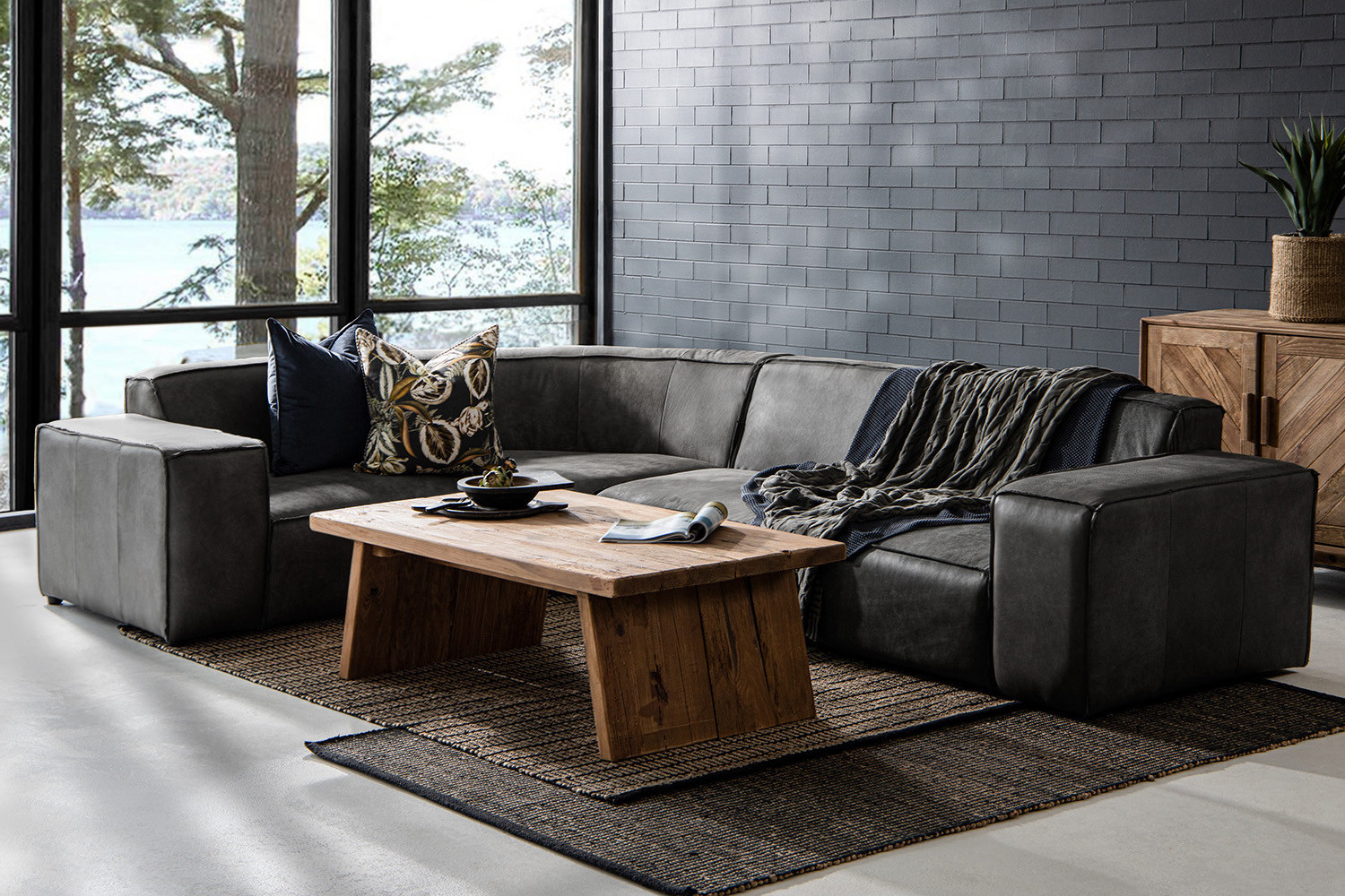 The Jagger Leather Modular Corner Couch Set boats a bold contemporary design with a square-like silhouette, keeping the design simple but striking. With plenty of style and space this modular couch is upholstered with luxurious Nubuck leather, finished with reversed stitched seams to keep a natural raw look with a warm feel.