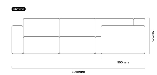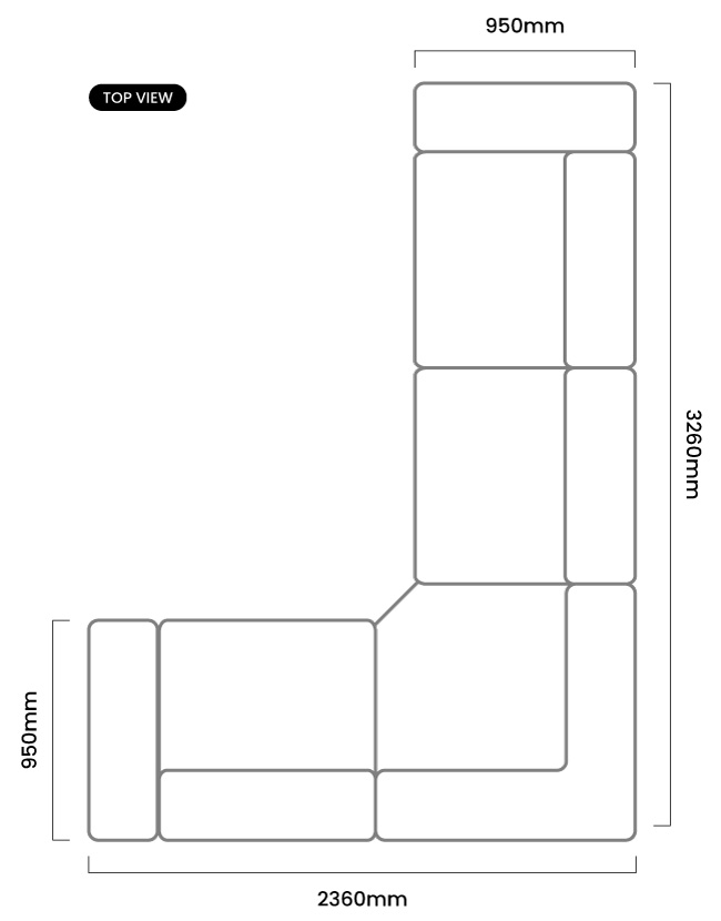 2360mm (L) x 3260mm (W) x 700mm (H)