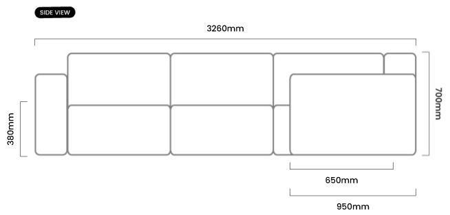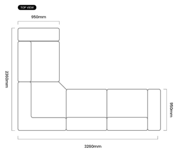 2360mm (L) x 3260mm (W) x 700mm (H) | Seat Height - 380mm | Seat Depth - 650mm