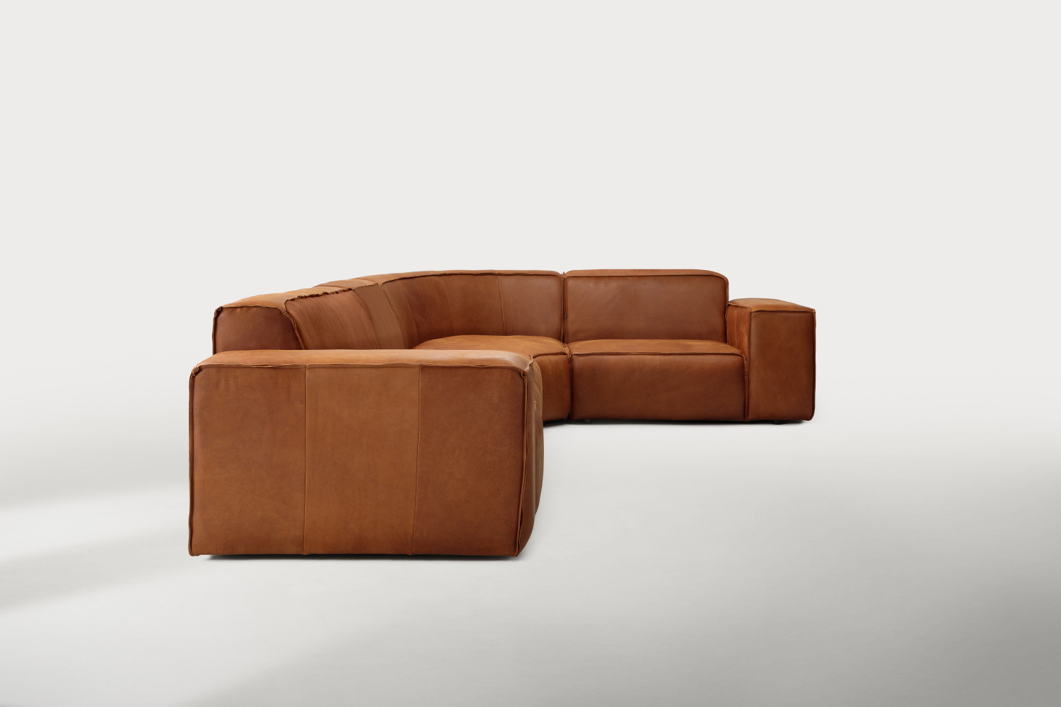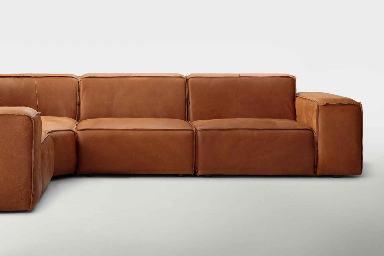 The Jagger Leather Modular Corner Couch boasts a bold, contemporary design with a square silhouette, keeping its appearance simple but striking. With an abundance of style and space, this expansive piece is a perfect choice to anchor your lounge or living room. The Jagger is upholstered in luxurious Nubuck leather and finished with reverse-stitched seams, standout details that add to its inviting design.