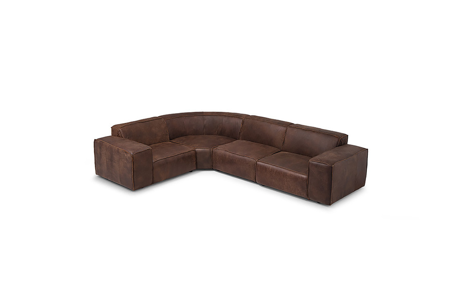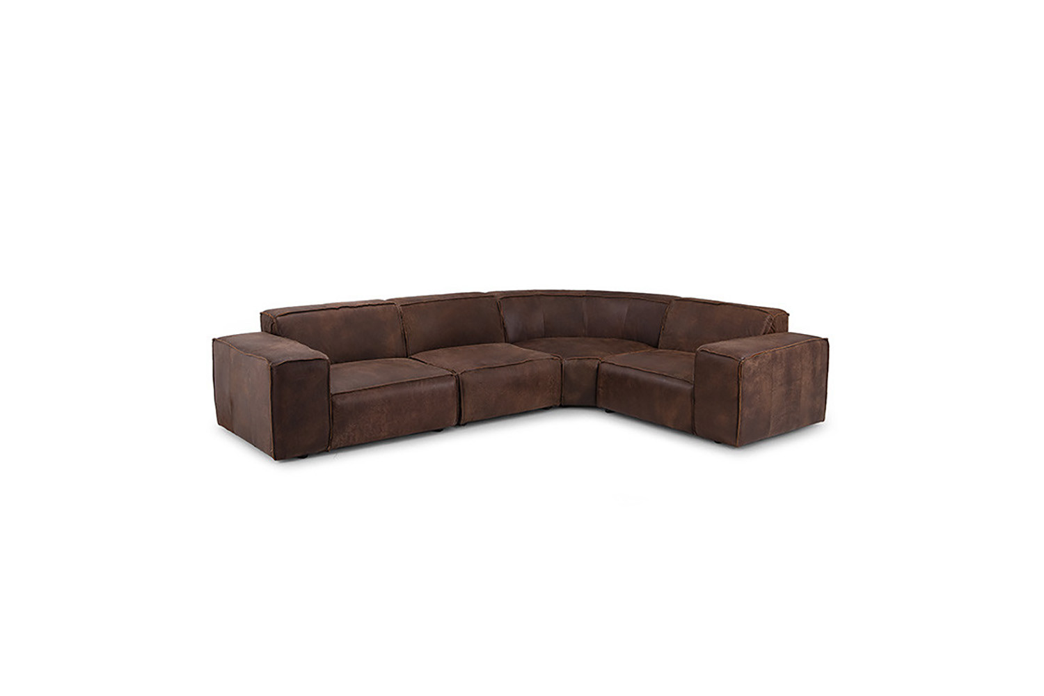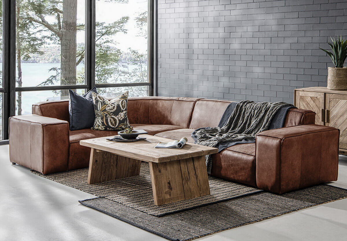 The Jagger Leather Modular Corner Couch Set boasts a bold contemporary design with a square-like silhouette, keeping the design simple but striking. With plenty of style and space this modular couch is upholstered with luxurious Nubuck leather, finished with reversed stitched seams to keep a natural raw look with a warm feel.