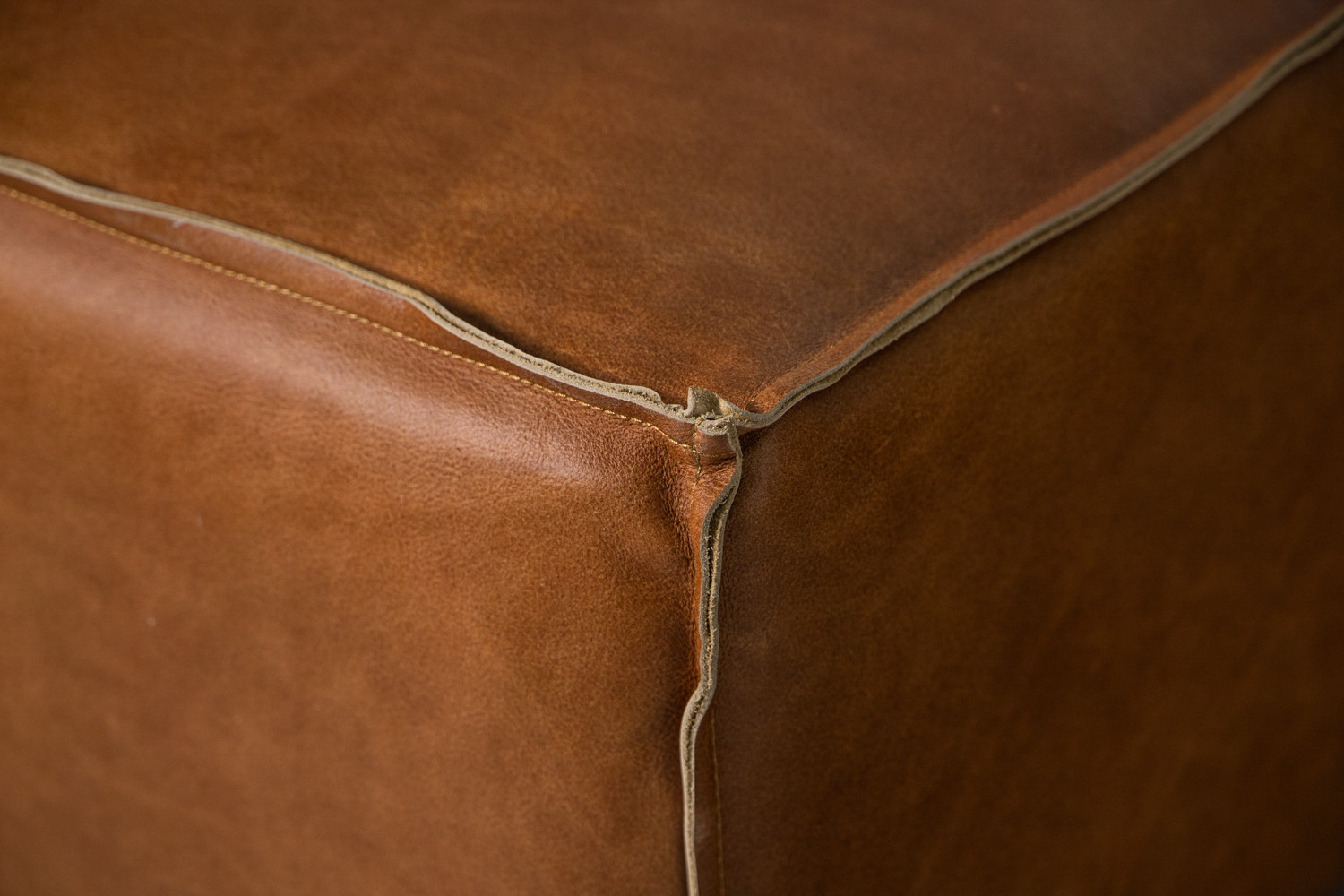 This Jagger Modular is a corner couch with independent moveable modules for various spacious seating configurations. Simply slide each piece into place and clip the attachment mechanism underneath the couch. This modular couch features an ottoman which matches the design of the couch. The Jagger presents a stylish homesteading staple with a raw untainted look. This is achieved by pairing the iconic reversed seam stitching with genuine full grain leather, a durable yet soft-to-the-touch leather. Full grain leather retains all the natural hallmarks and embellishments from the hide it is derived from.