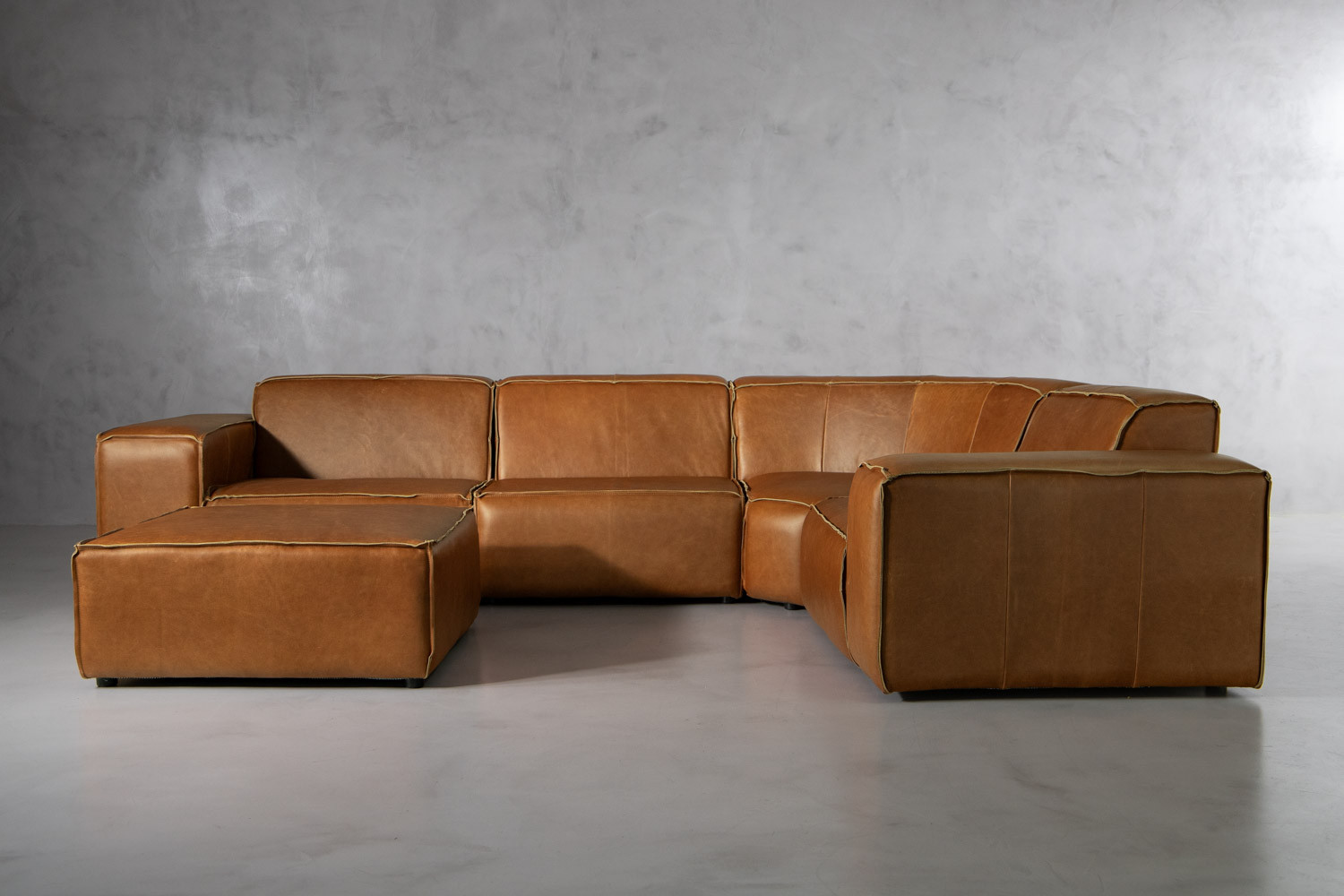 • 5-piece Modular Couch with free-standing full grain leather ottoman