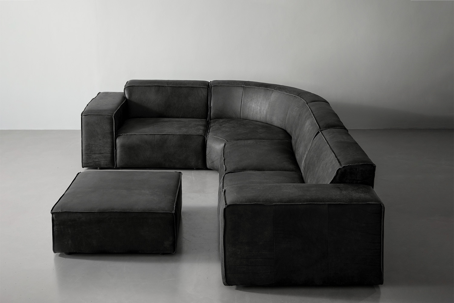 - - 5-piece Modular Couch with free-standing Nubuck leather ottoman