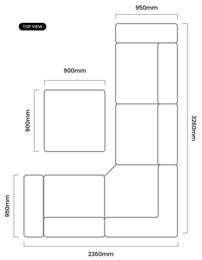 2360mm (L) x 3260mm (W) x 700mm (H)