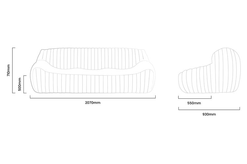 2070mm (L) x 930mm (W) x 710mm (H) | Seat Height - 500mm | Seat Depth - 550mm