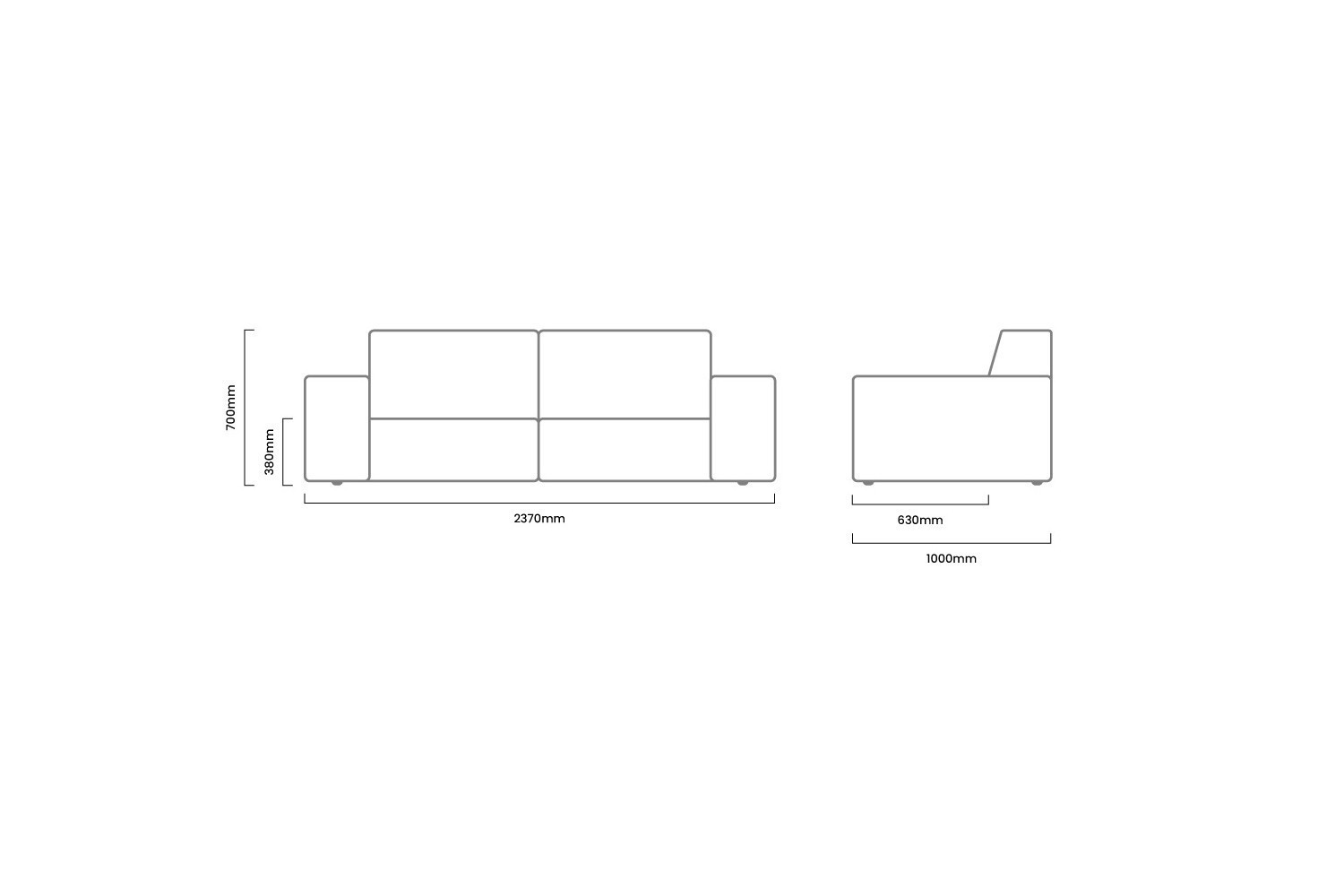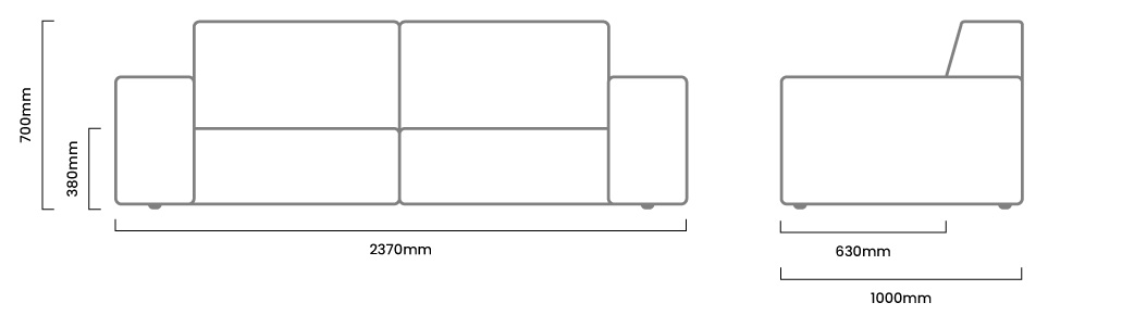 2370mm (L) x 1000mm (W) x 700mm (H) | Seat Height - 380mm | Seat Depth - 630mm