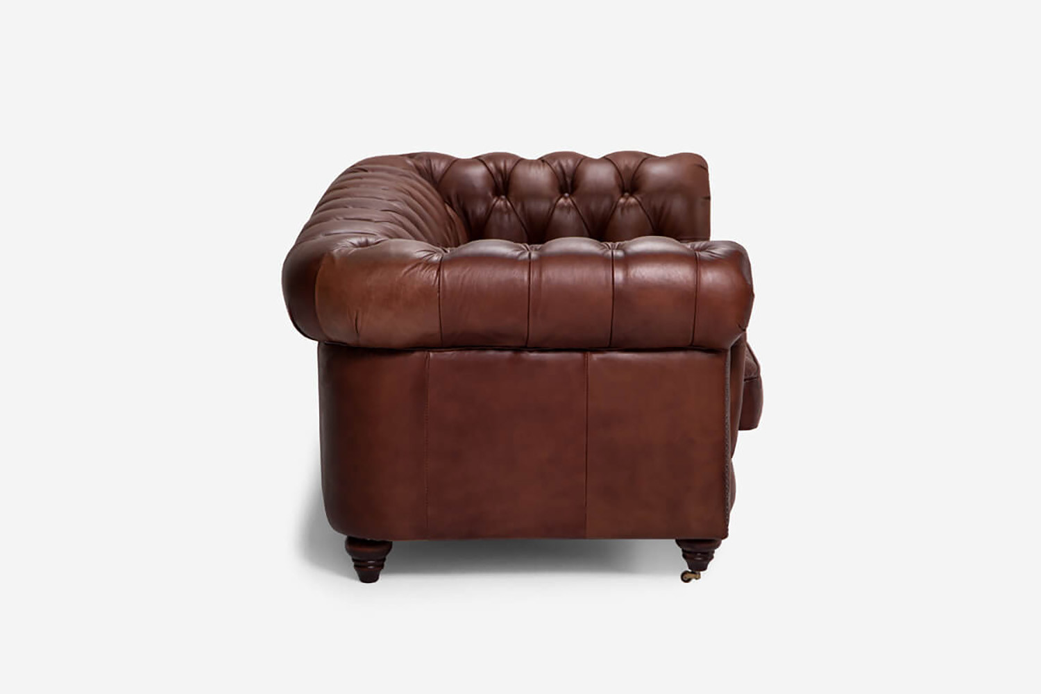 Add a classy, luxurious statement piece to your home with the Jefferson, a timeless style icon. Our Jefferson range features the finest in full grain leather. The gorgeously soft surface, deep-buttoned tufting, and thick cushioning makes this one of the most comfortable couches you’ll ever sit on. Bevelled wooden feet add to the traditional charm of the design, while piano caster front feet allow for easy repositioning when you decide it’s time to cosy up to the fireplace, grab a leather-bound diary or classic novel, and you’re all set!