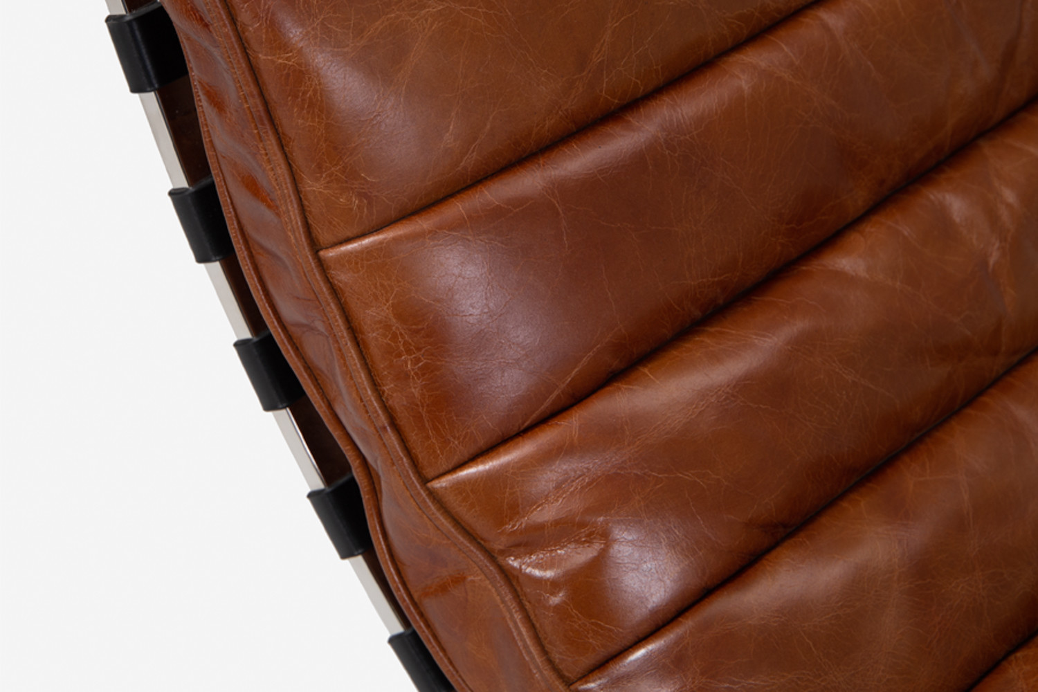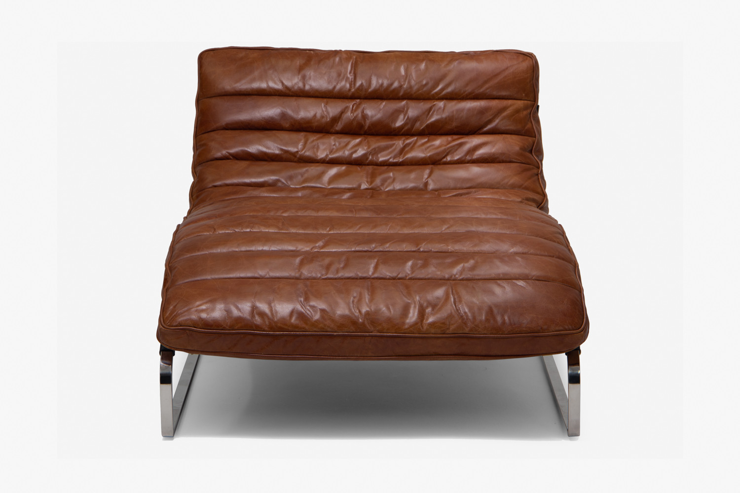 The ultimate combination of luxurious comfort and impressive style, the Morello Lounger will take any room from average to extraordinary. This large 2-person chaise is sumptuously upholstered with irresistible full grain vintage leather featuring channel stitched detail, complemented by a polished stainless-steel framework, creating a sleek mid-century modern aesthetic that will command the spotlight in any space.