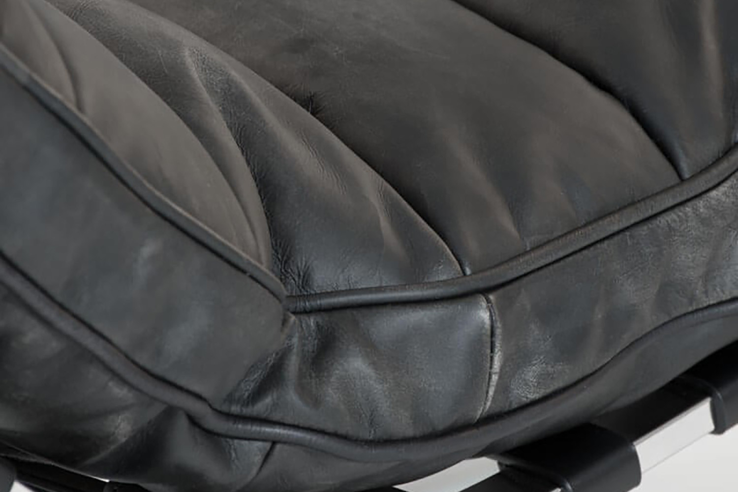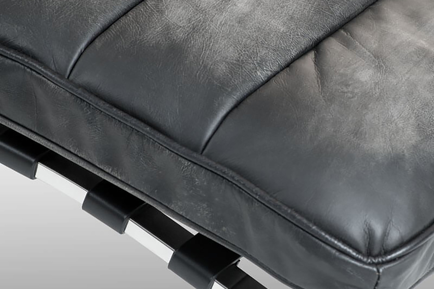 The ultimate combination of luxurious comfort and impressive style, the Morello Lounger will take any room from average to extraordinary. This elegant piece is sumptuously upholstered with irresistible full grain vintage leather featuring channel stitched detail, complemented by a polished stainless-steel framework, creating a sleek mid-century modern aesthetic that will command the spotlight in any space.