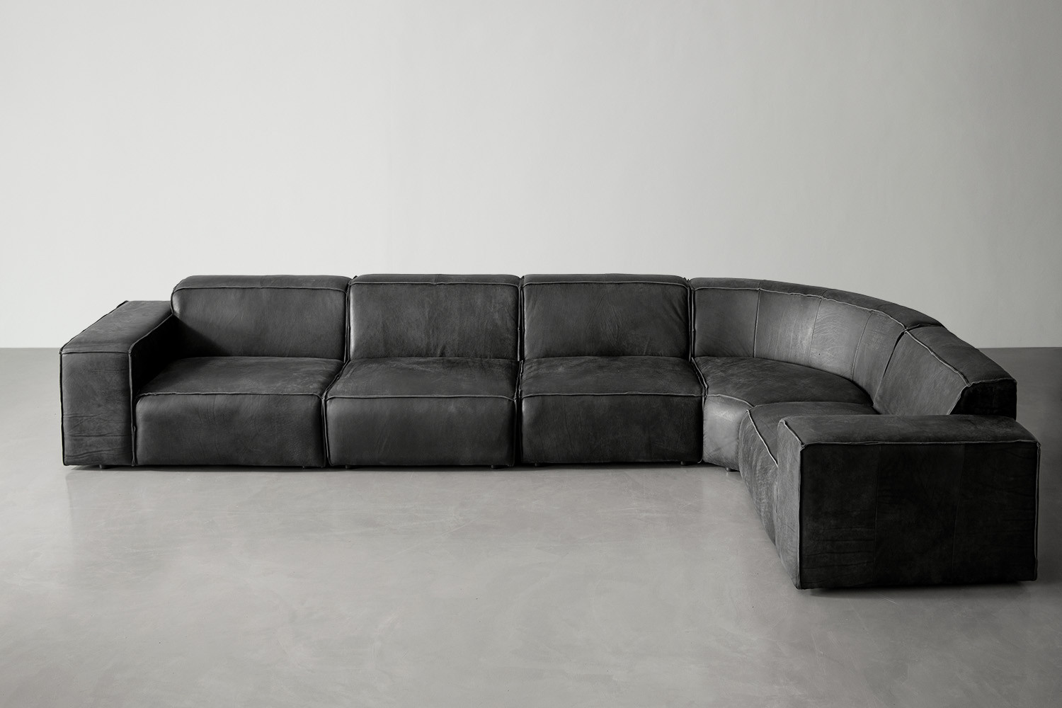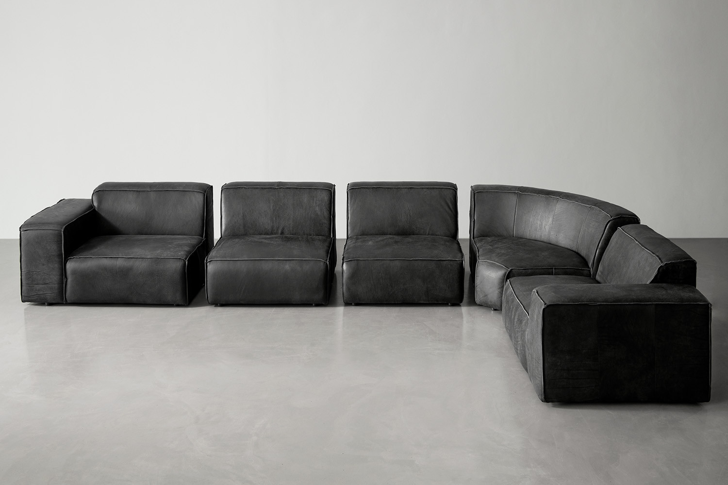 The Jagger Leather Modular Grand Corner Set boasts a bold contemporary design with a square-like silhouette, keeping the design simple but striking. With plenty of style and space this modular couch is upholstered with luxurious Nubuck genuine leather, finished with reversed stitched seams to keep a natural raw look with a warm feel.