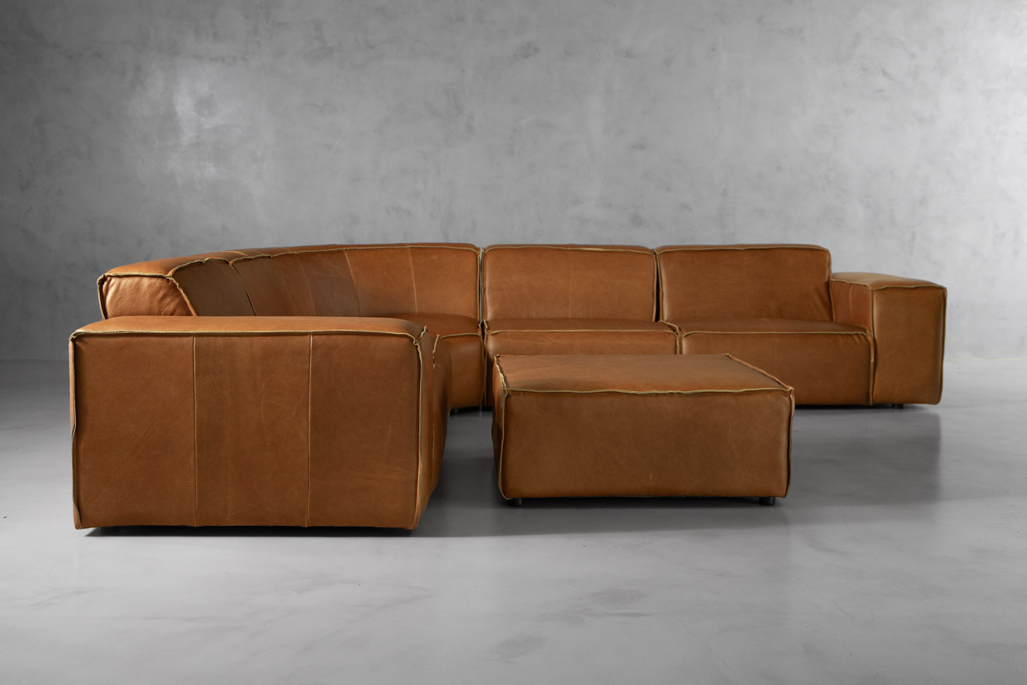 This Jagger Modular is a corner couch with independent moveable modules for various spacious seating configurations. Simply slide each piece into place and clip the attachment mechanism underneath the couch. This modular couch features an ottoman which matches the design of the couch. The Jagger presents a stylish homesteading staple with a raw untainted look. This is achieved by pairing the iconic reversed seam stitching with genuine full grain leather, a durable yet soft-to-the-touch full-grain leather. Full grain leather retains all the natural hallmarks and embellishments from the hide it is derived from.