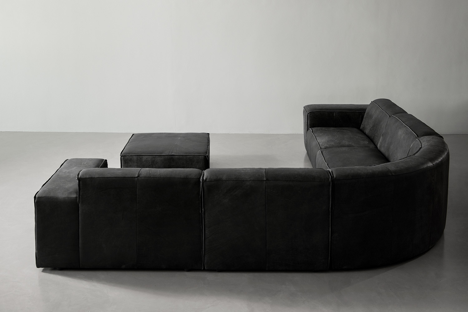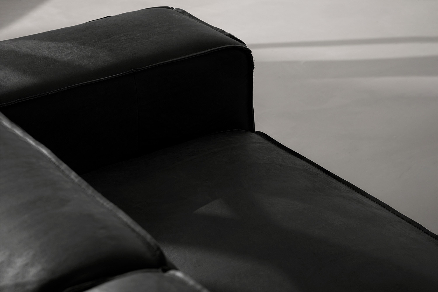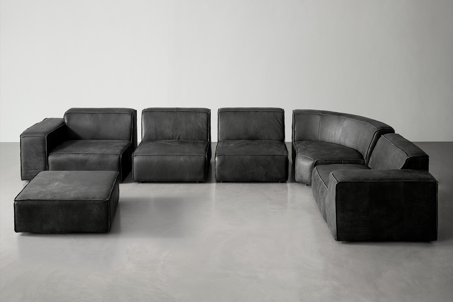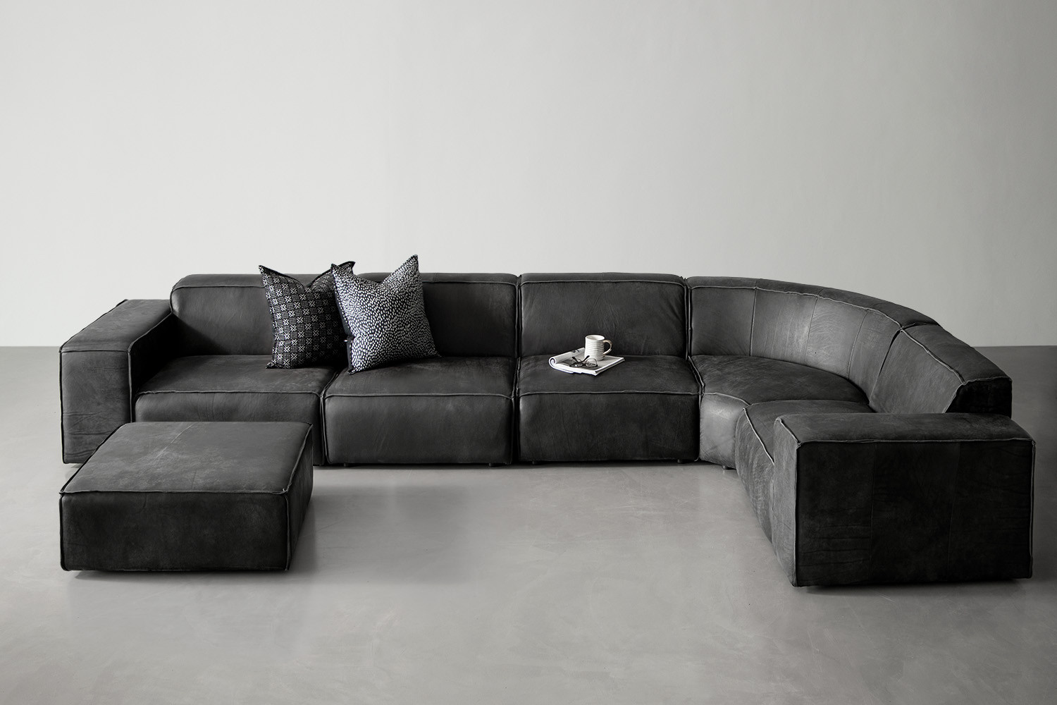 The Jagger Leather Modular Grand Corner Couch with Ottoman boasts a bold contemporary design with a square-like silhouette, keeping the design simple but striking. With plenty of style and space this modular couch is upholstered with luxurious Nubuck leather, finished with reversed stitched seams to keep a natural raw look with a warm feel.
