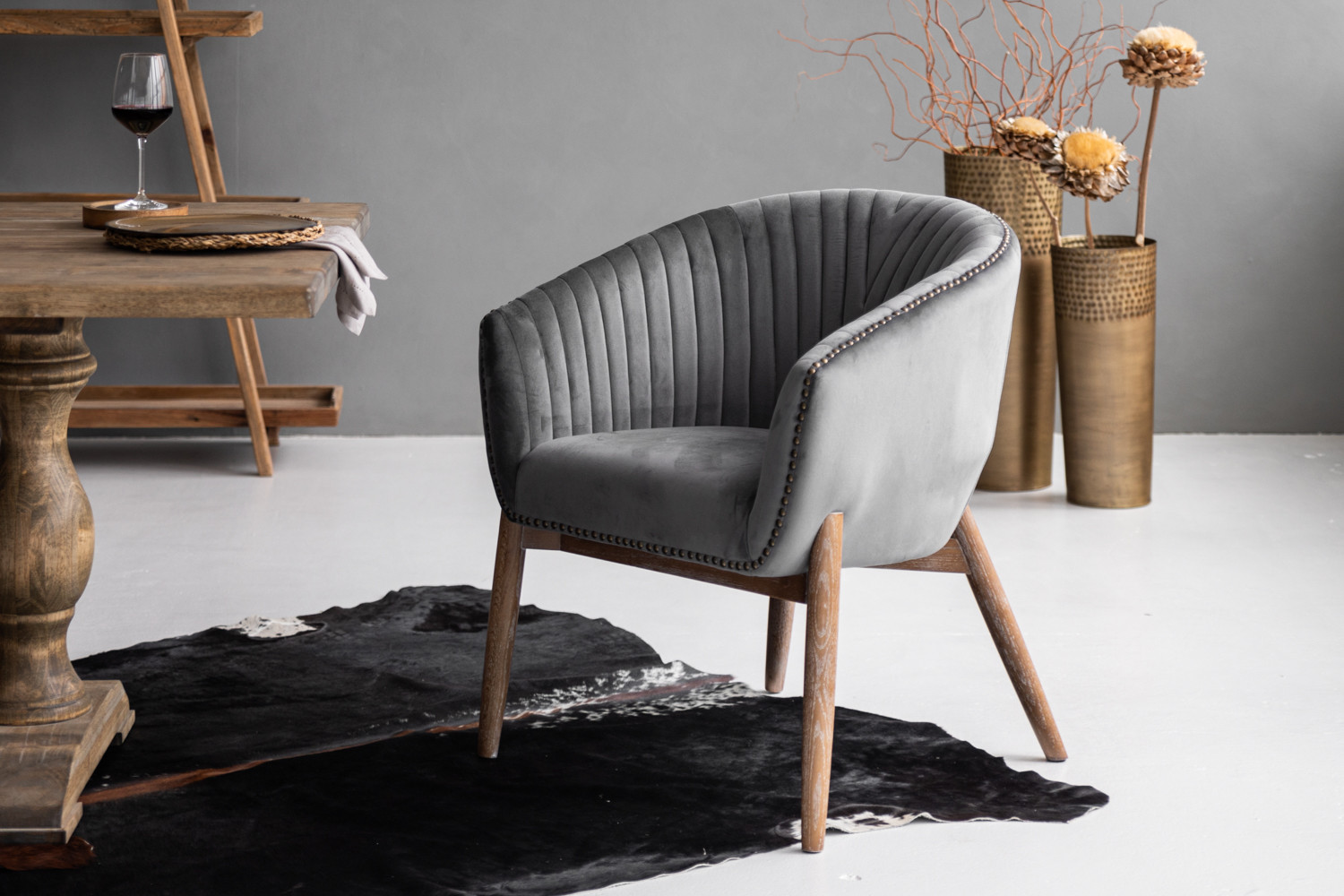 Sink into the soft embrace of the luxurious Lennon Dining Room Chair. Featuring a creatively crafted Ash wood frame with moulded tub seat, the Lennon is upholstered in luxe velvet, with studded bronze trim for a perfectly styled finish.