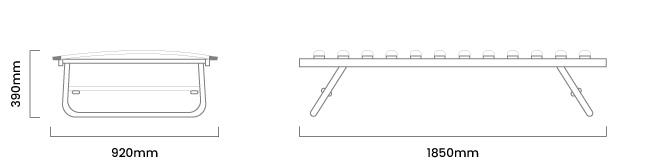1850mm (L) x 920mm (W) x 390mm (H)
