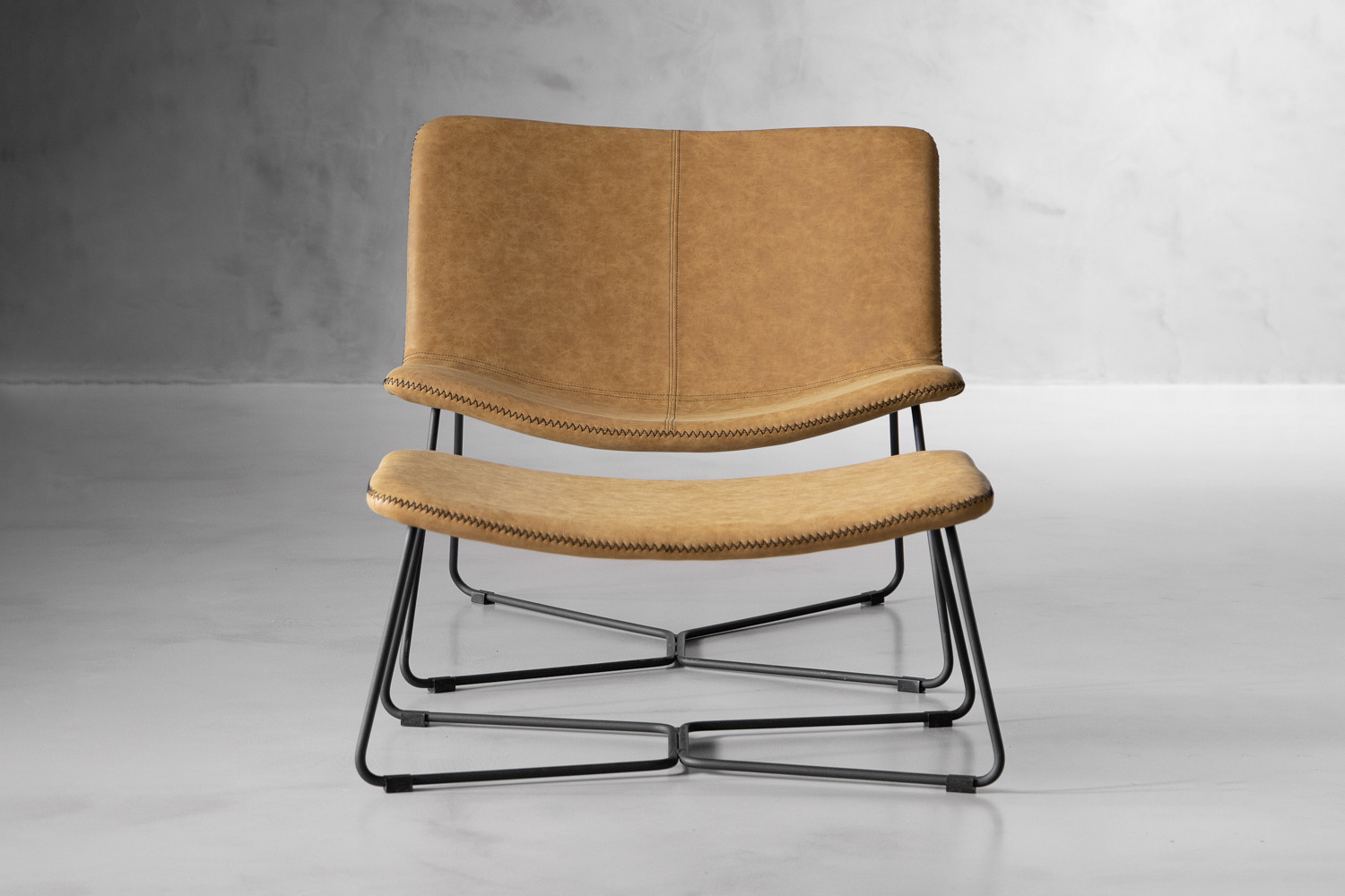 Invite a sense of serenity into your space with the Halo Lounge Chair. This contemporary lounger introduces unique design elements such as exposed stitching and textured microfibre upholstery atop a sturdy steel frame with a footstool, for optimal laid-back comfort.