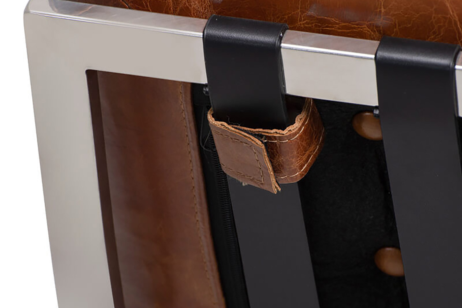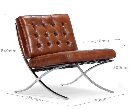 The Replica Barcelona Leather Lounge Chair features a polished stainless steel framework and full-grain leather. A striking example of when classic comfort meets contemporary design.