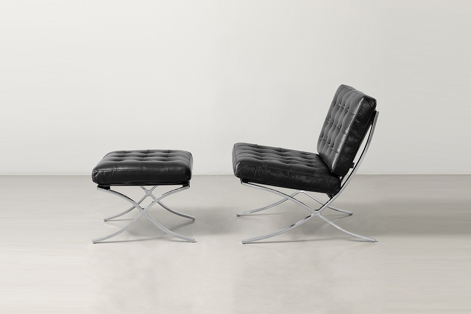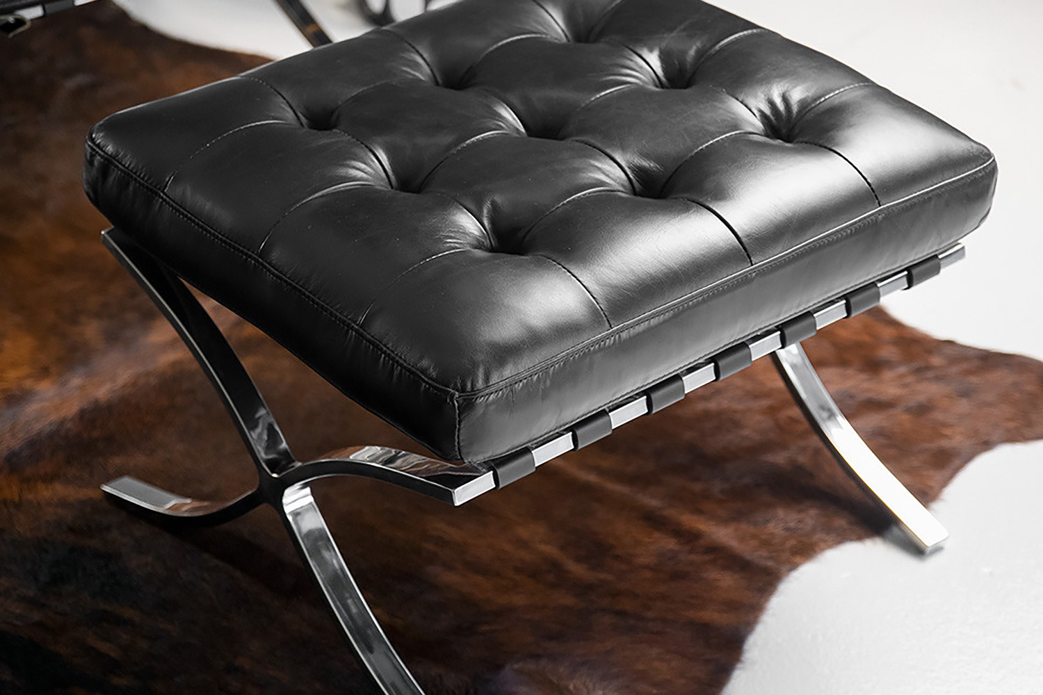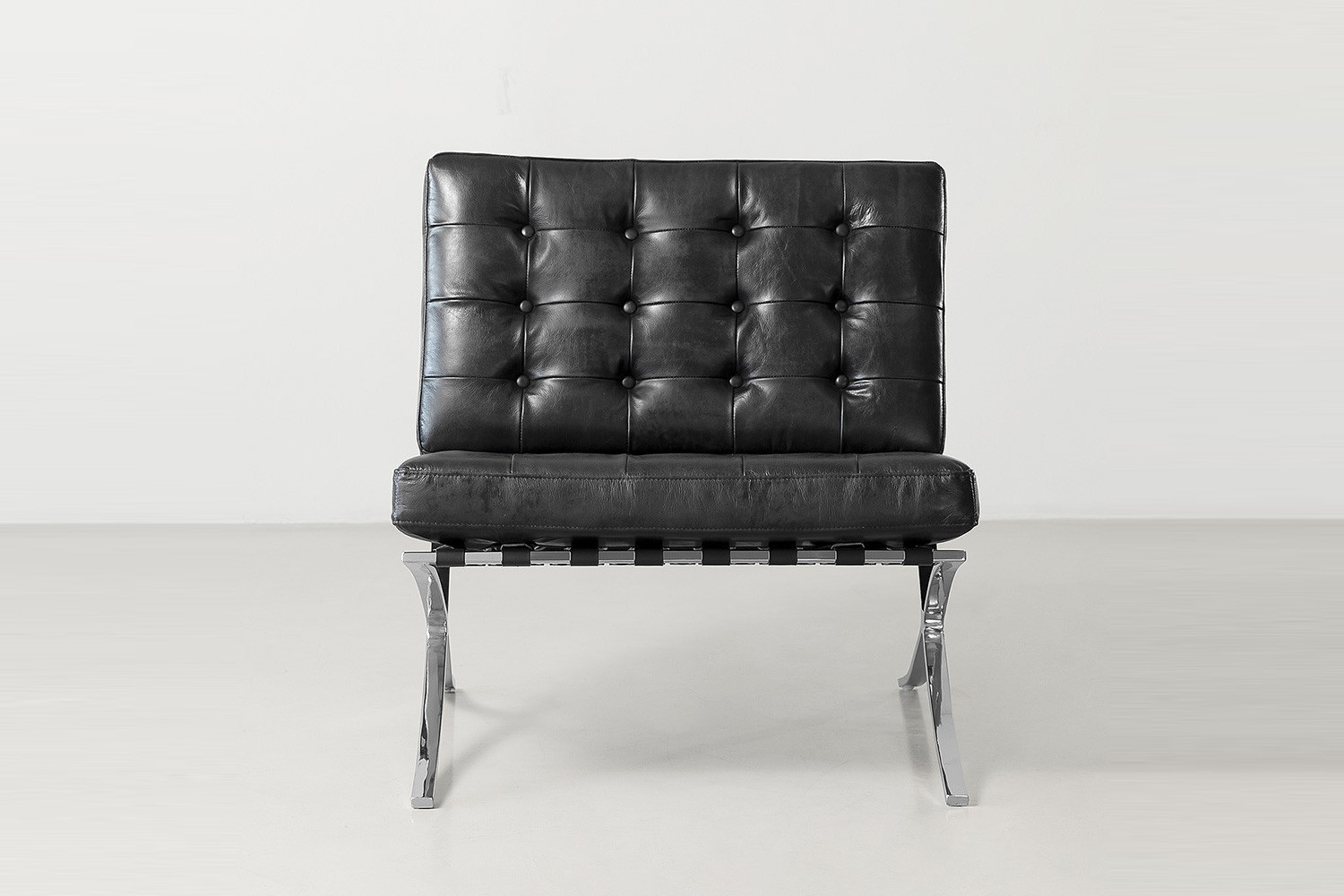 The Replica Barcelona Leather Lounge Chair features a polished stainless steel framework and full-grain leather. A striking example of when classic comfort meets contemporary design.